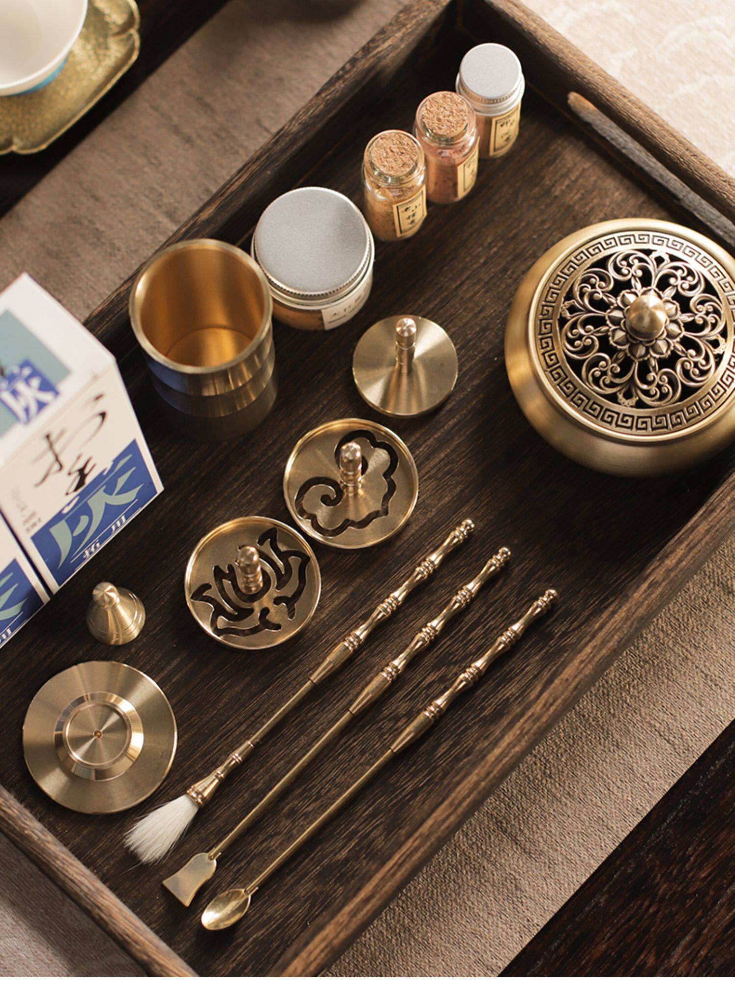 순수한 구리 향 세트 용품 인센스 애쉬 압력 향 흡연자 가정용 향 분말 만들기 향 봉인 형 향 인쇄 도구 시작스토어 가기