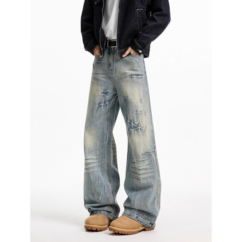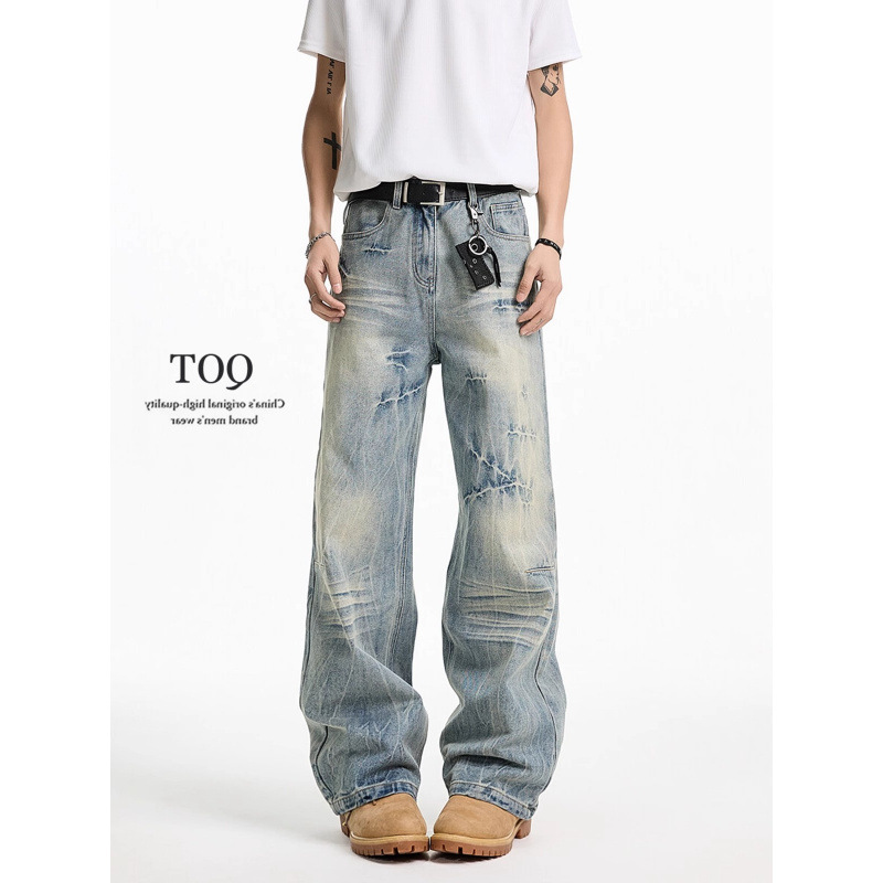 씻은 균열 청바지 남성과 여성의 봄 옷을 입은 넓은 다리 바지 Plutton 잘 생긴 느슨한 캐주얼 바지 트렌디 하이 스트리트 vibe2025스토어 가기