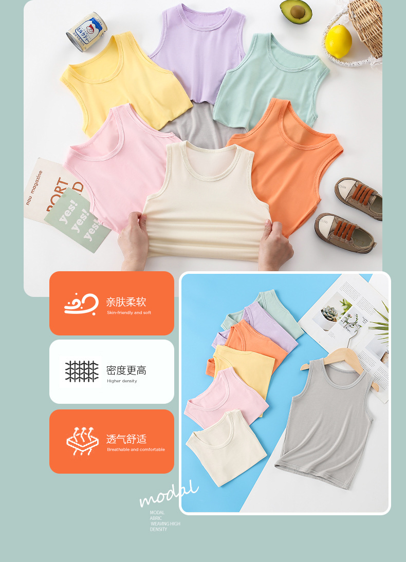 어린이 조끼 봄과 여름 얇은 아기 민소매 티셔츠 모달 통기성 남녀 어린이 슬링 속옷베이스 셔츠