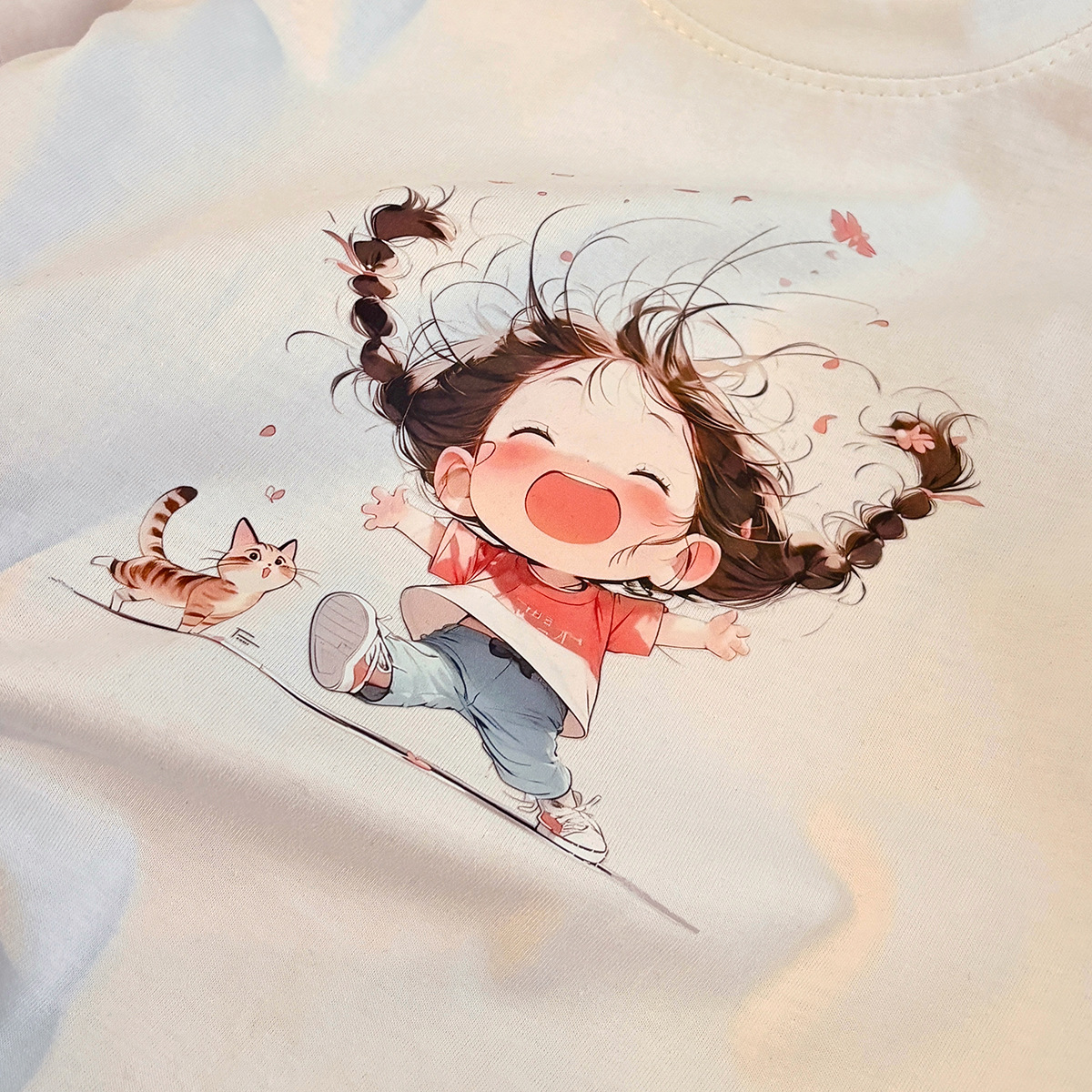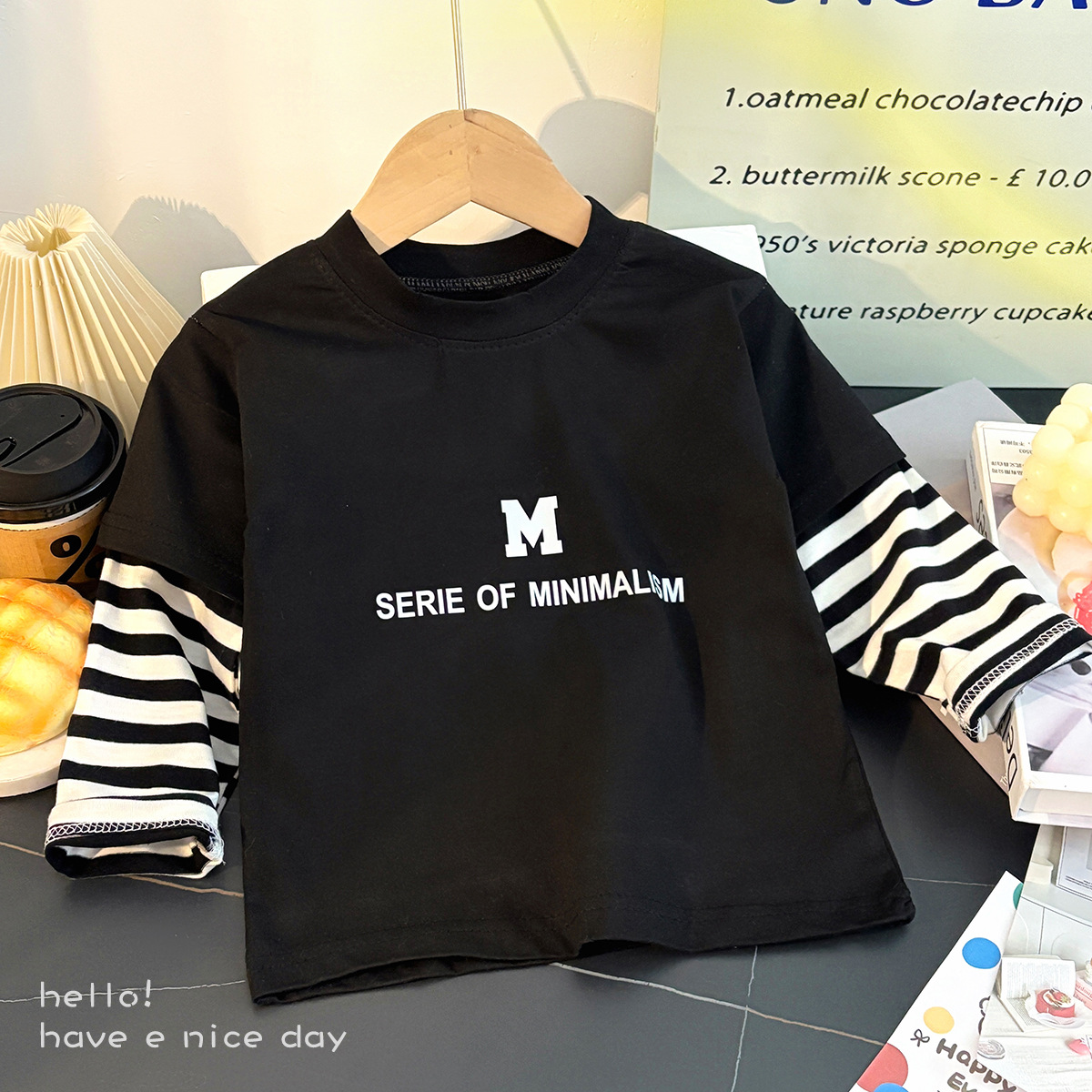 소년의 봄과 가을 긴 소매 새 봄과 가을 서양식 어린이 순면 아기 소녀 투피스 기본 티셔츠 탑스토어 가기