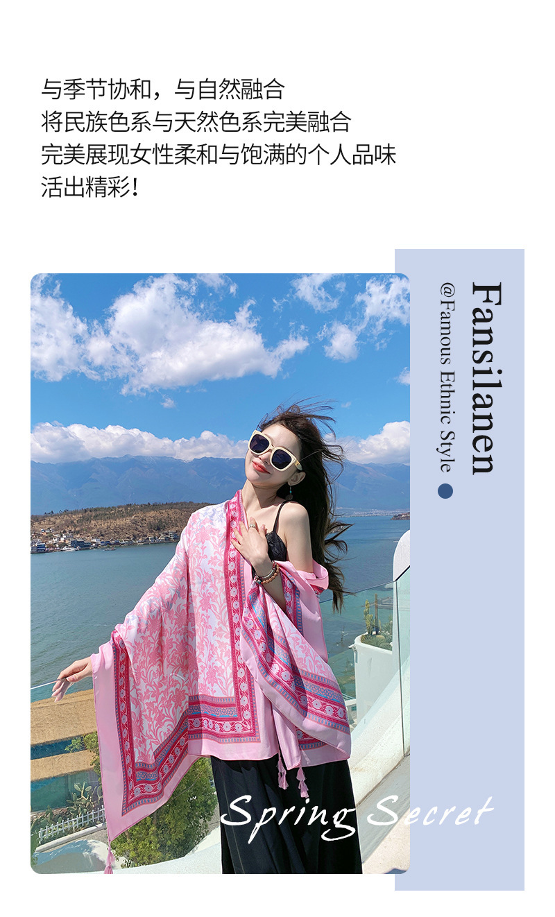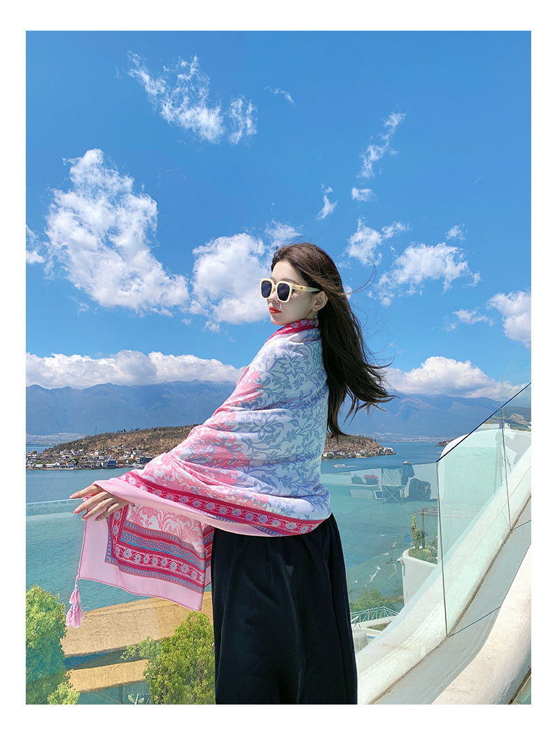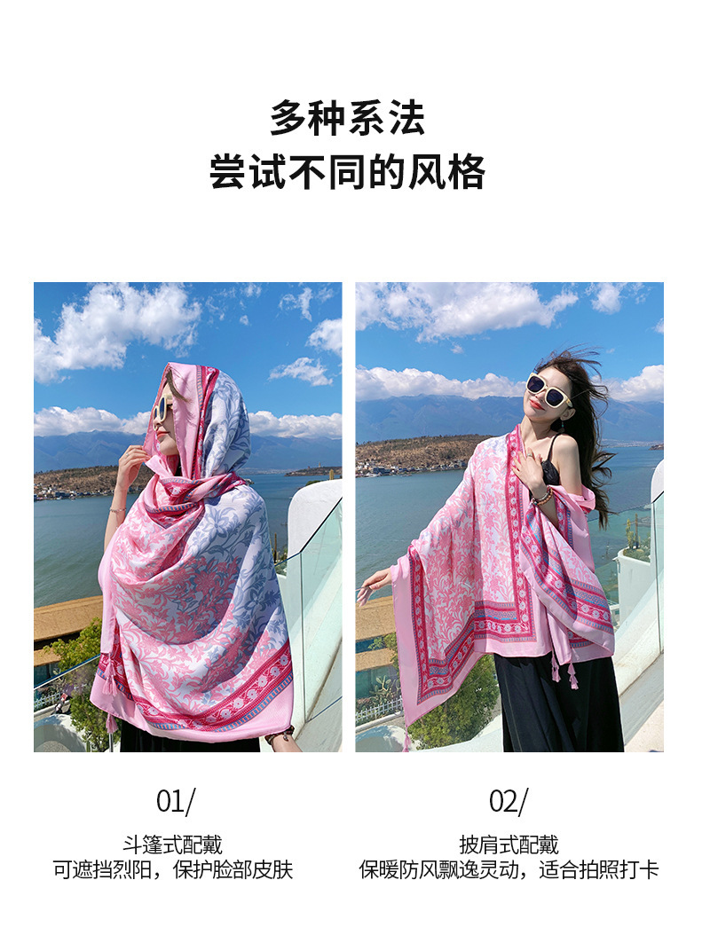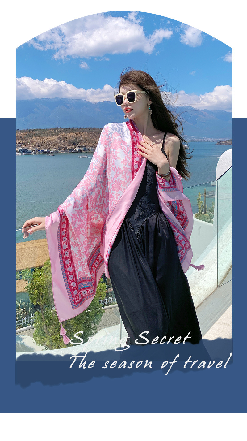 여름 휴가 여행 실크 스카프 여성 긴 스카프 외부 햇빛 민족 스타일 이중 사용 경량 스카프 대형 선스크린 목도리스토어 가기