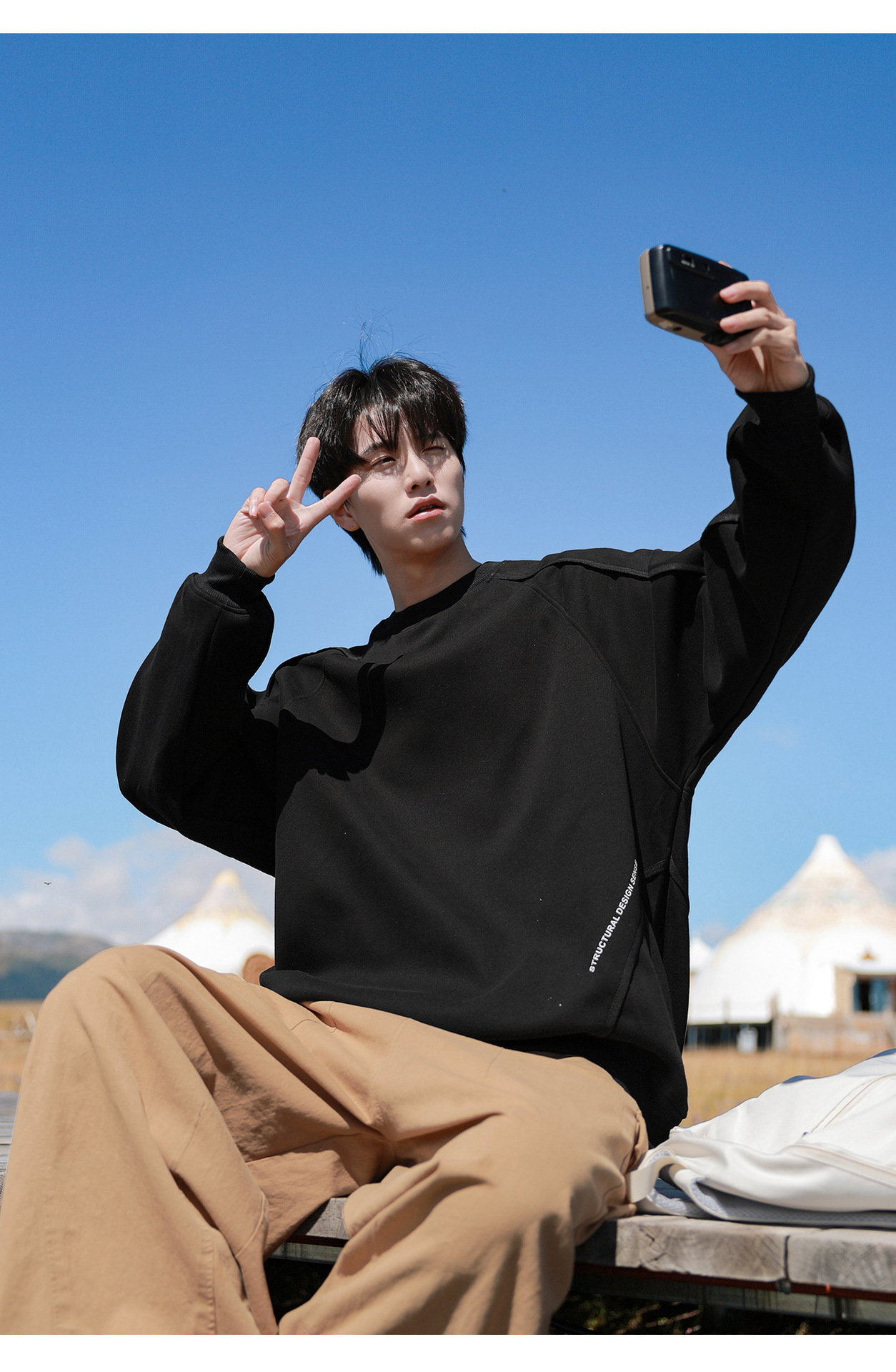 공장 직접 공급 420g 무거운 해체 스웨터 남성 봄과 가을 미국 하이 스트리트 조수 브랜드 소년 크루 넥 재킷스토어 가기