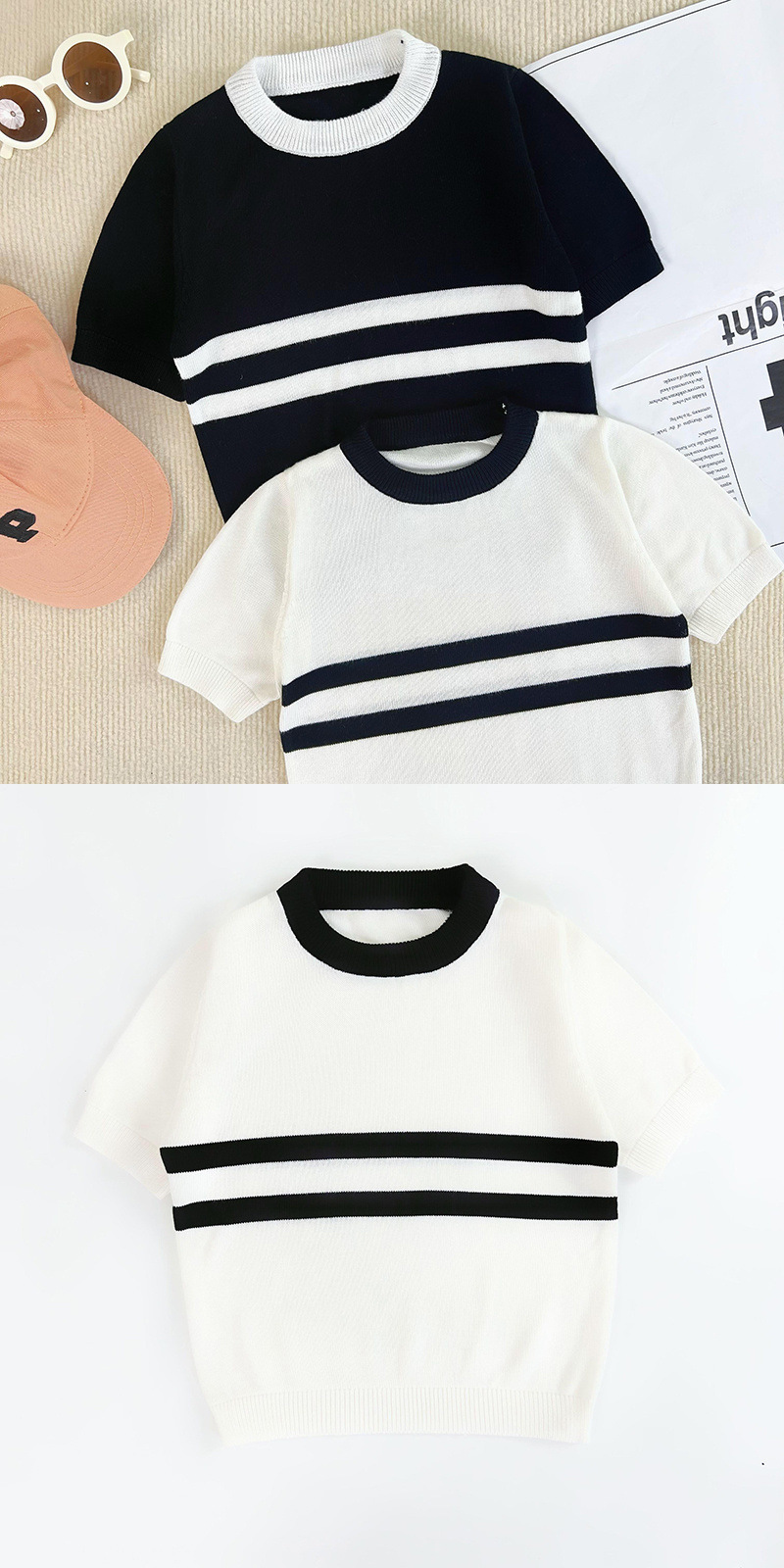 2025 어린이 반팔 여름 아이스 실크 니트 셔츠 소년 소녀를위한 한국 스타일 아동복 아기 최고의 유니섹스 옷스토어 가기