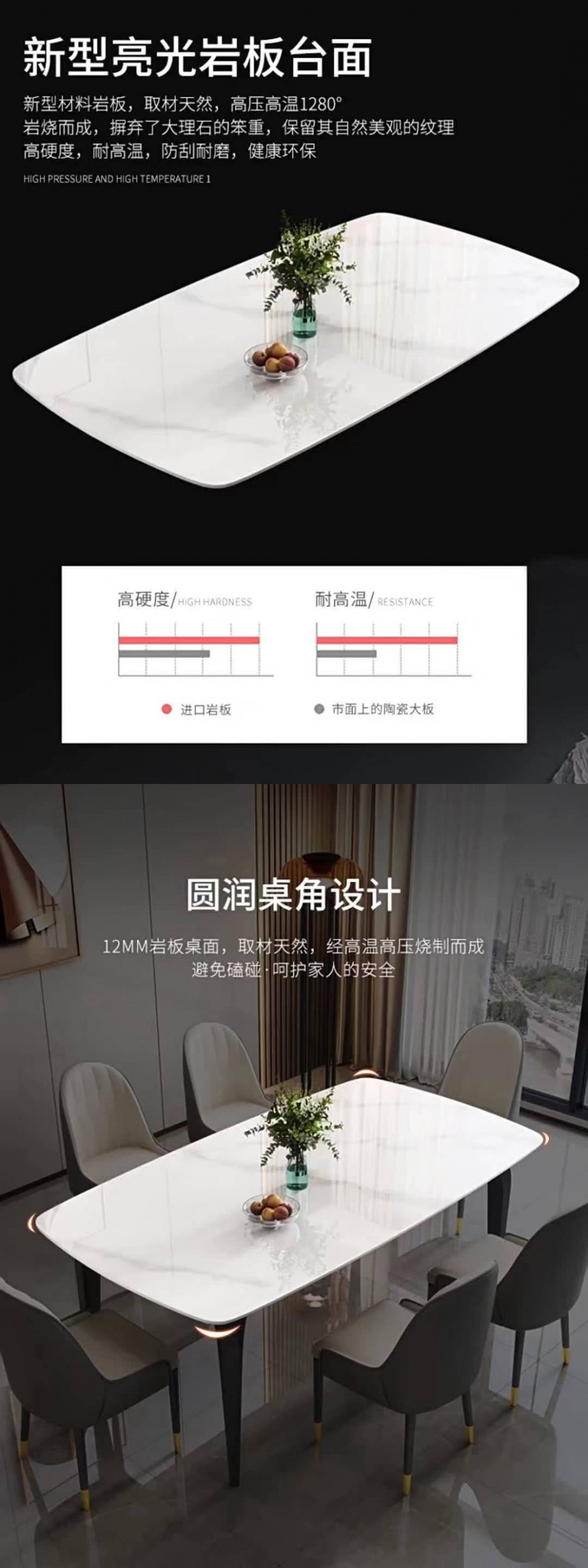 이탈리아 빛 럭셔리 록 보드 식탁 작은 아파트 가구 현대 간단한 하이 엔드 라이트 직사각형 식탁 및 의자 조합스토어 가기