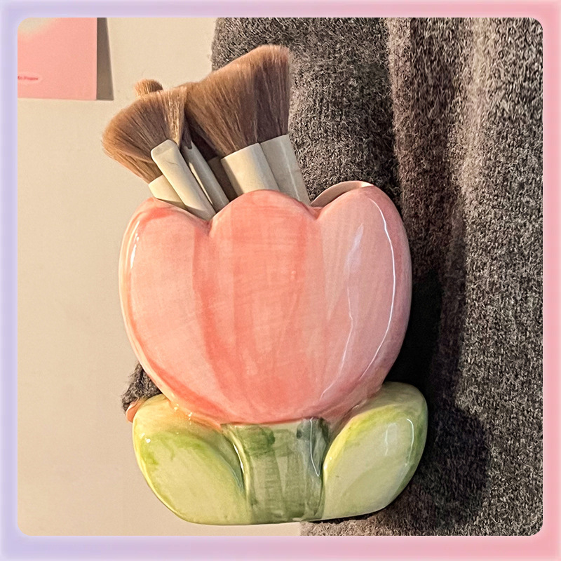 ✅튤립 꽃 화장품 브러시 보관 양동이 사무실 펜 컨테이너 소녀 침실 장식 데스크톱 보관 진자