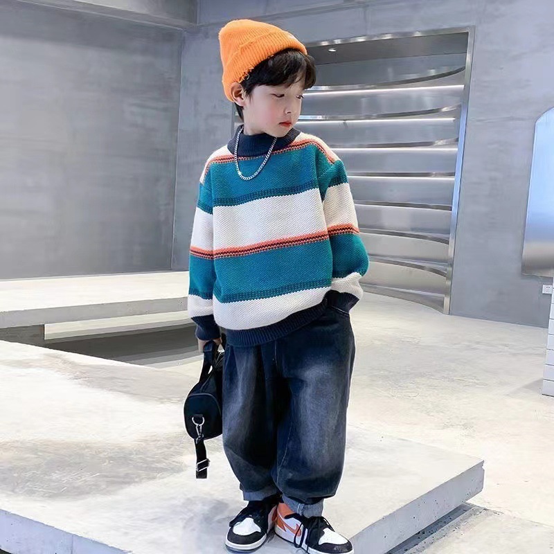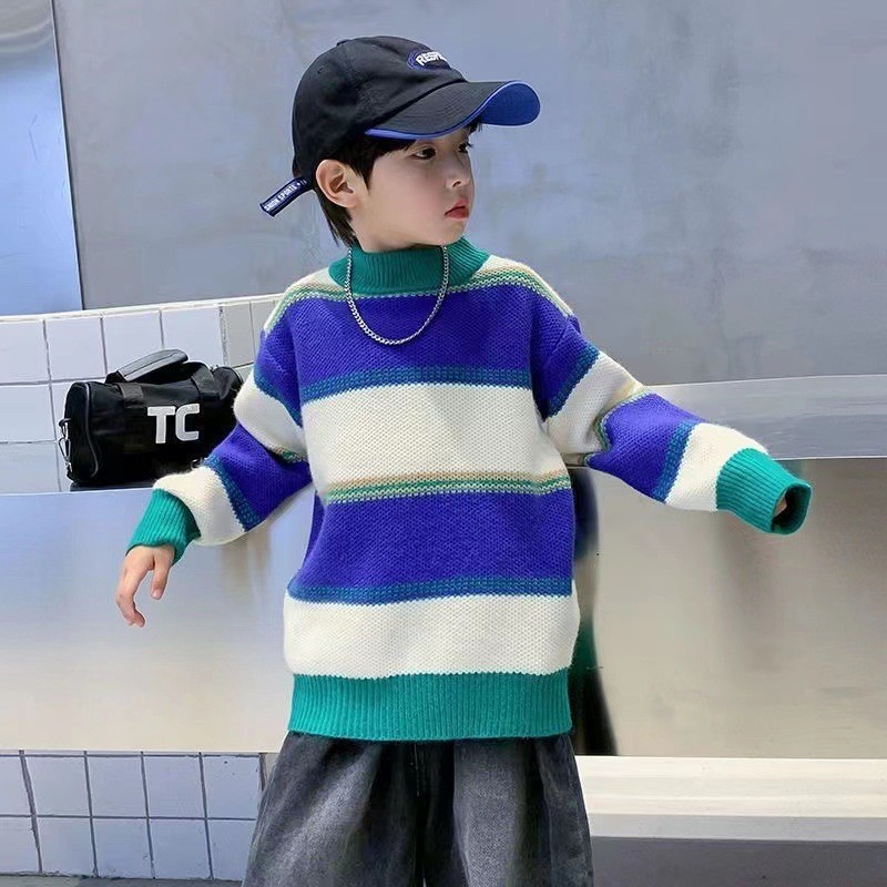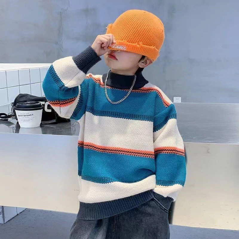 소년 스웨터 가을과 겨울 2023 새로운 어린이 니트 스웨터 스트라이프 겨울 두꺼운 소년의 아기베이스 셔츠스토어 가기