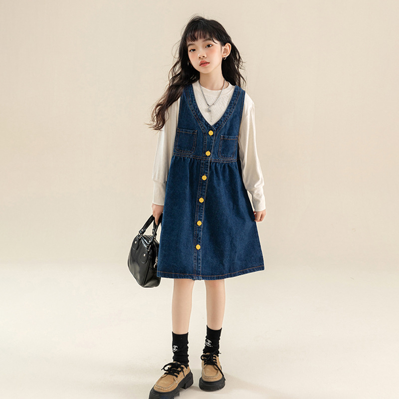 소녀 원피스 어린이 봄과 가을 새로운 큰 아이들 한국 공주 치마를 짜는 어린이 의류 소녀의 세대스토어 가기