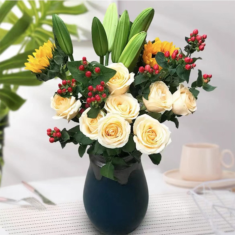 멀티 헤드 장미 꽃 윈난 스트레이트 헤어 도매 해바라기 eustoma 향수 백합 꽃 물 꽃다발