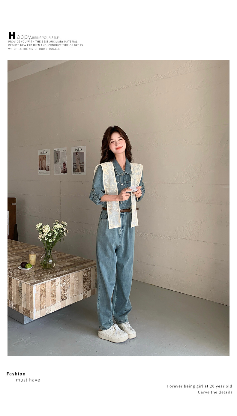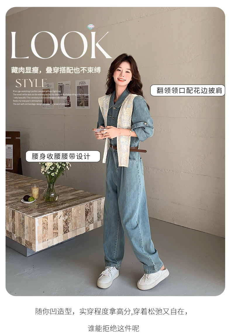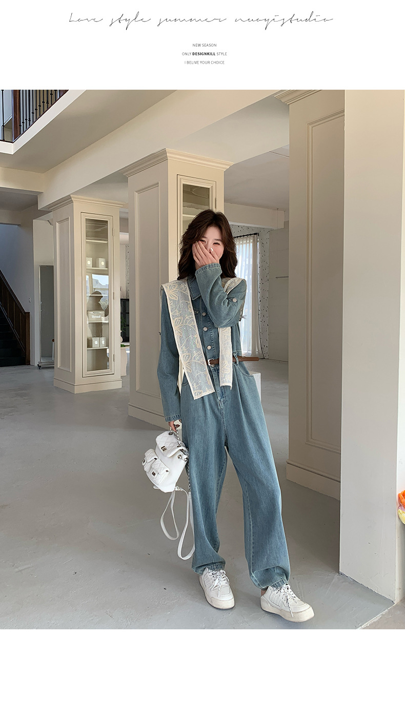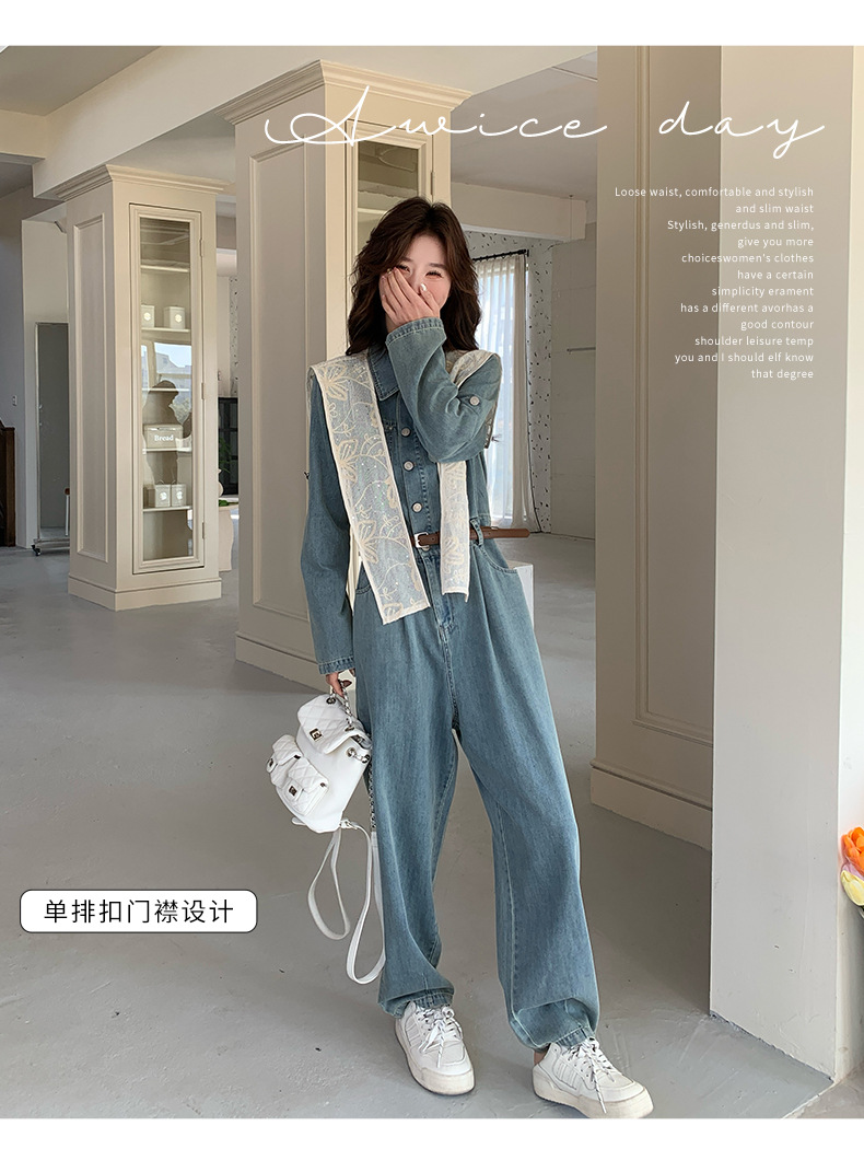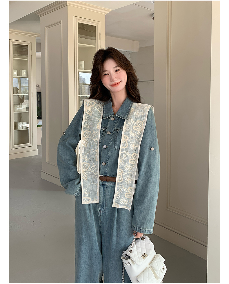 새로운 레이스 목도리 바느질 한국 데님 원피스 와이드 레그 바지 5856-P155-K228스토어 가기