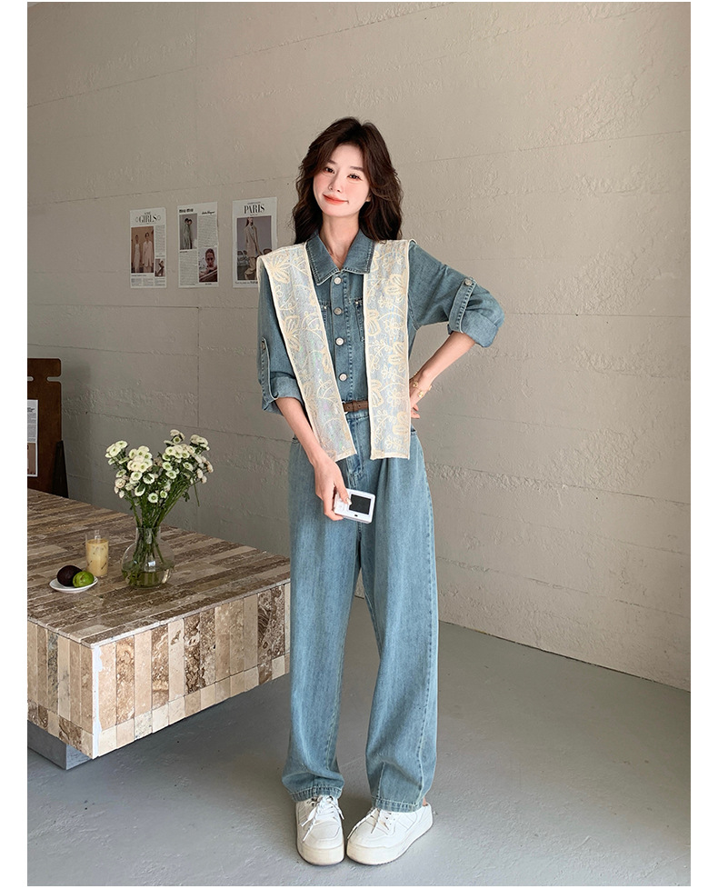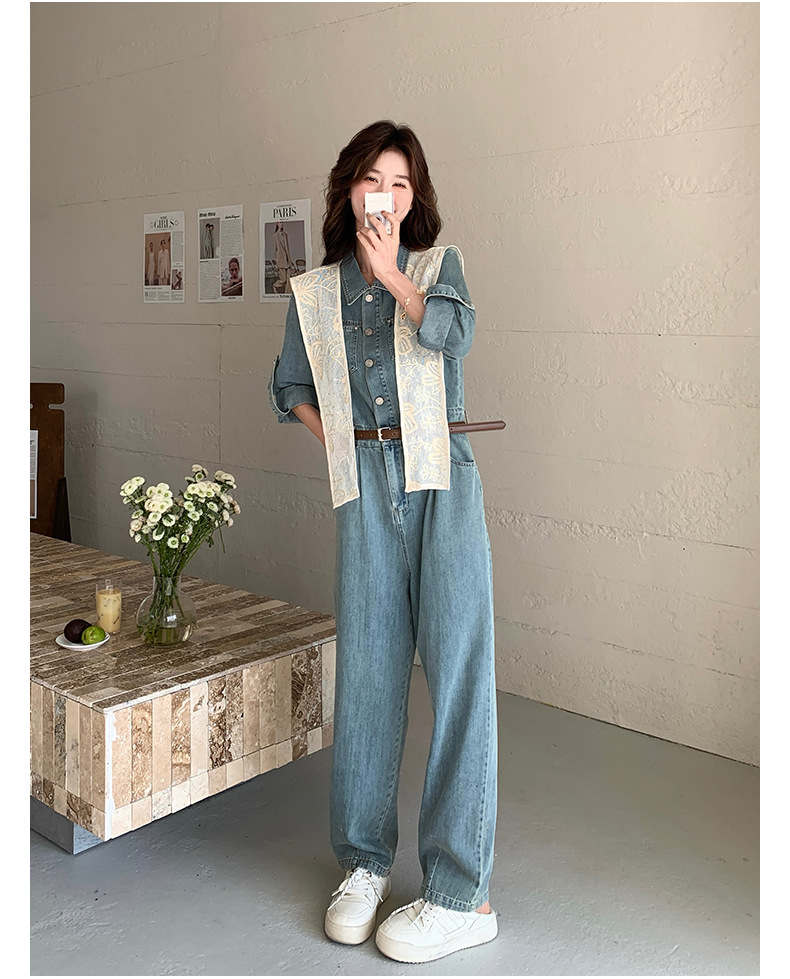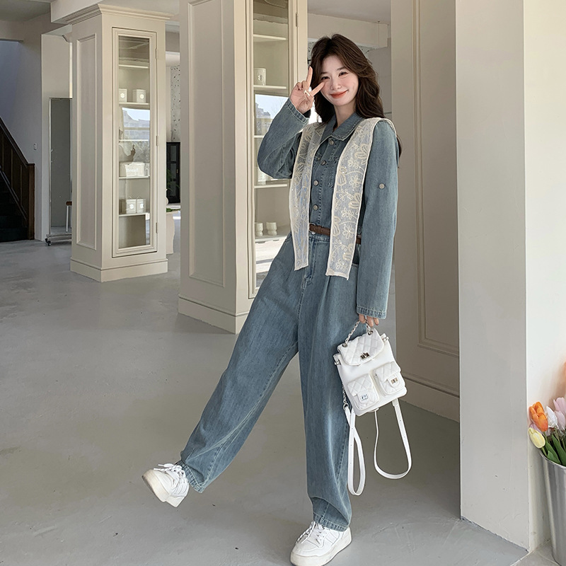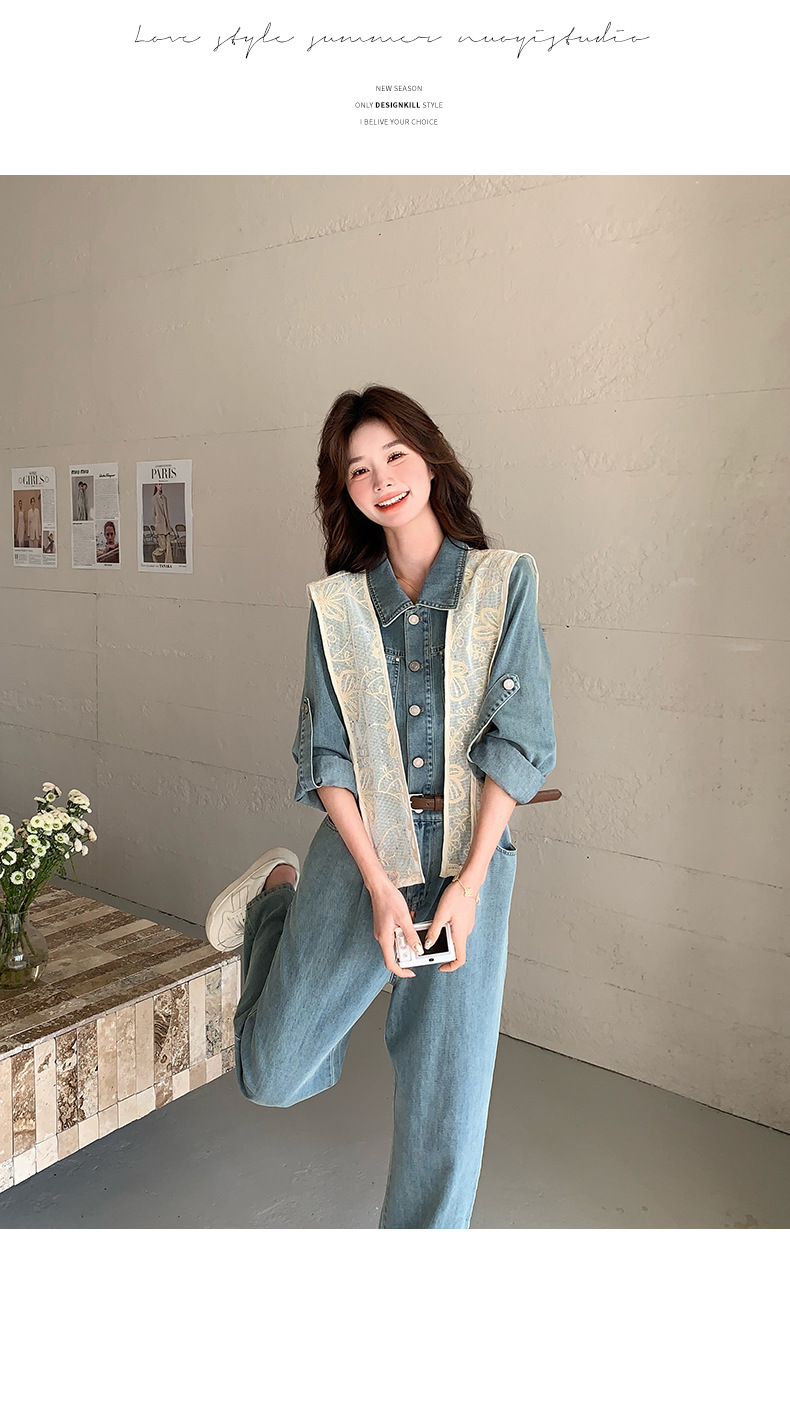새로운 레이스 목도리 바느질 한국 데님 원피스 와이드 레그 바지 5856-P155-K228스토어 가기