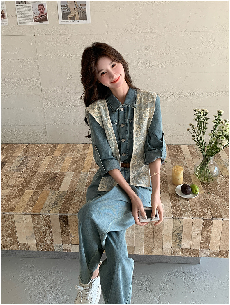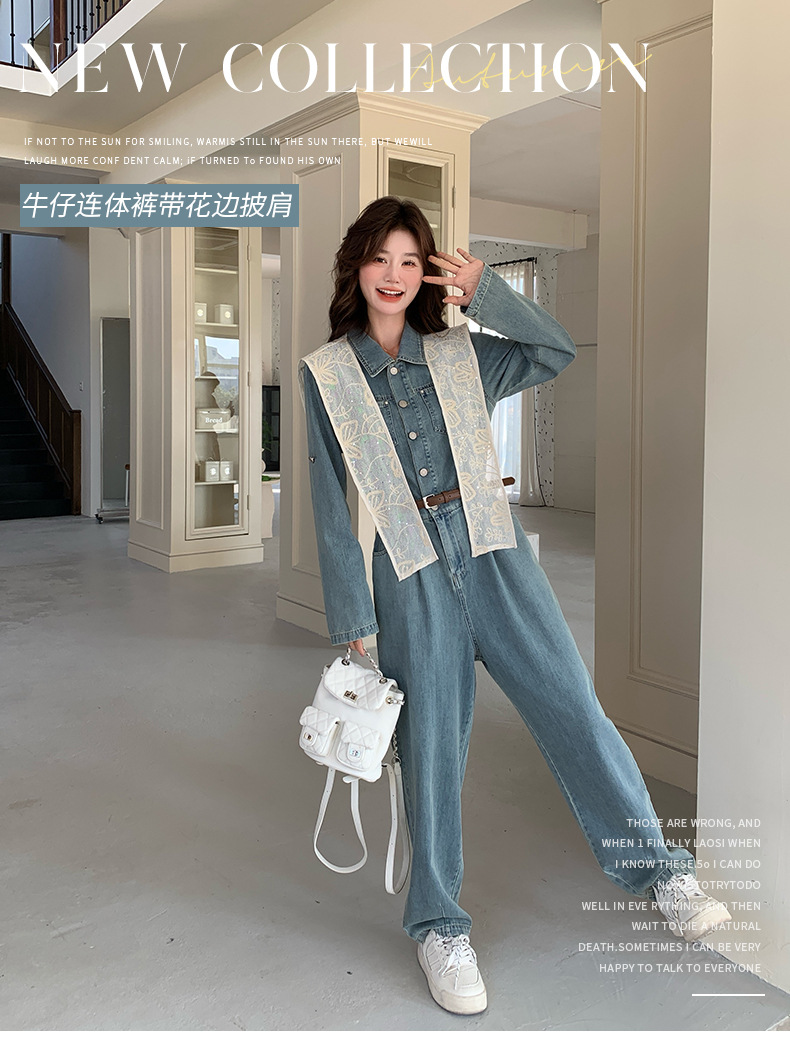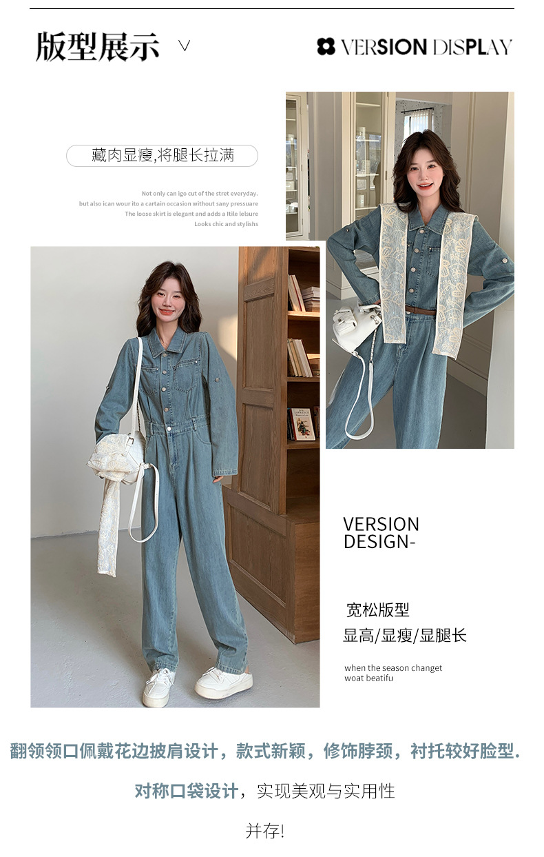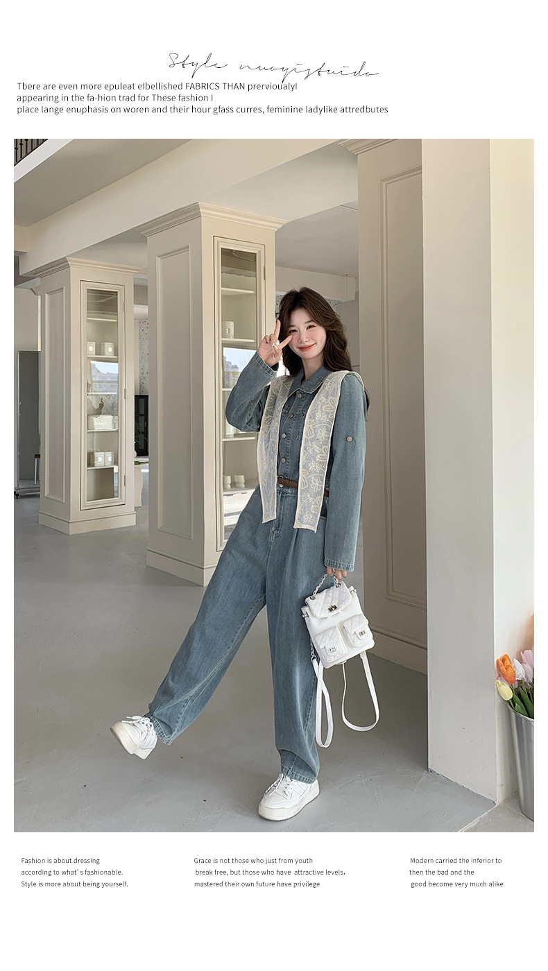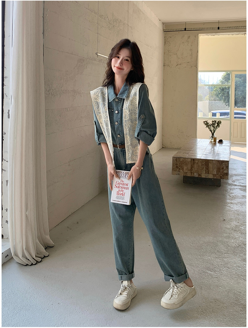 새로운 레이스 목도리 바느질 한국 데님 원피스 와이드 레그 바지 5856-P155-K228스토어 가기
