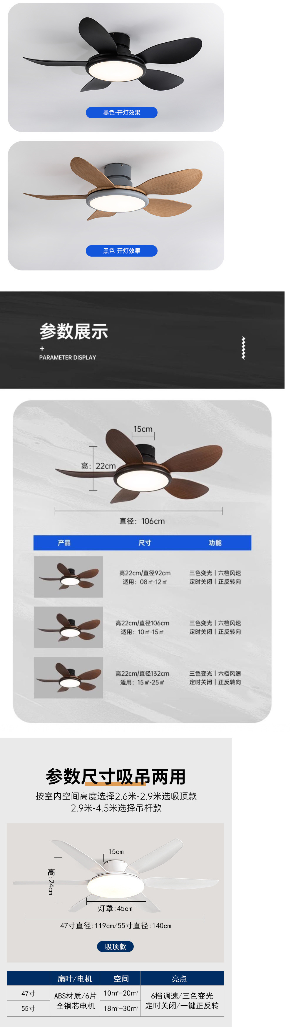 전체 스펙트럼 침실 팬 조명, 팬이 있는 식당 조명, 가정용 일체형 거실 대형 풍량 천장 선풍기 조명, 스마트 리모컨스토어 가기