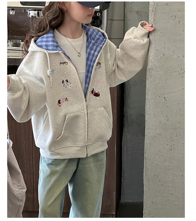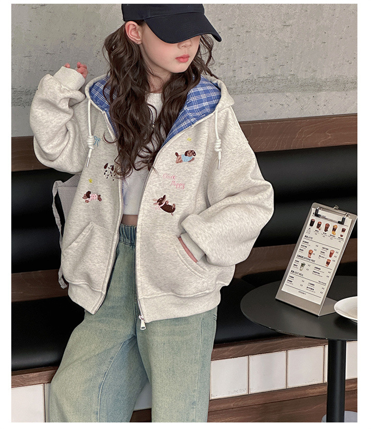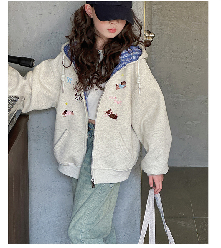 여아 코트 2026 신상 아동복 여아 캐주얼 아우터 후드 만화 자수 트렌디 봄옷