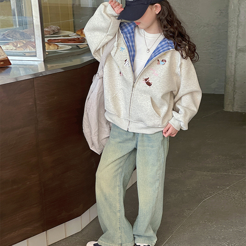 여아 코트 2026 신상 아동복 여아 캐주얼 아우터 후드 만화 자수 트렌디 봄옷스토어 가기
