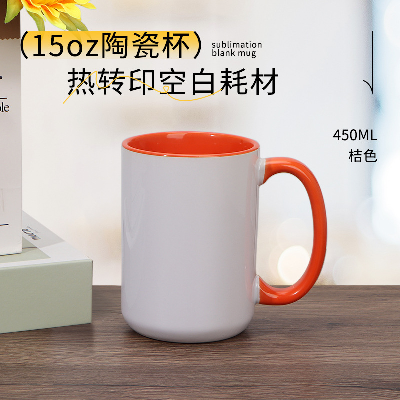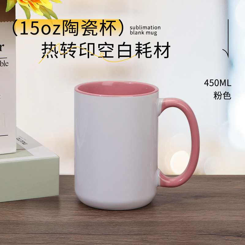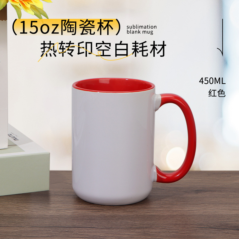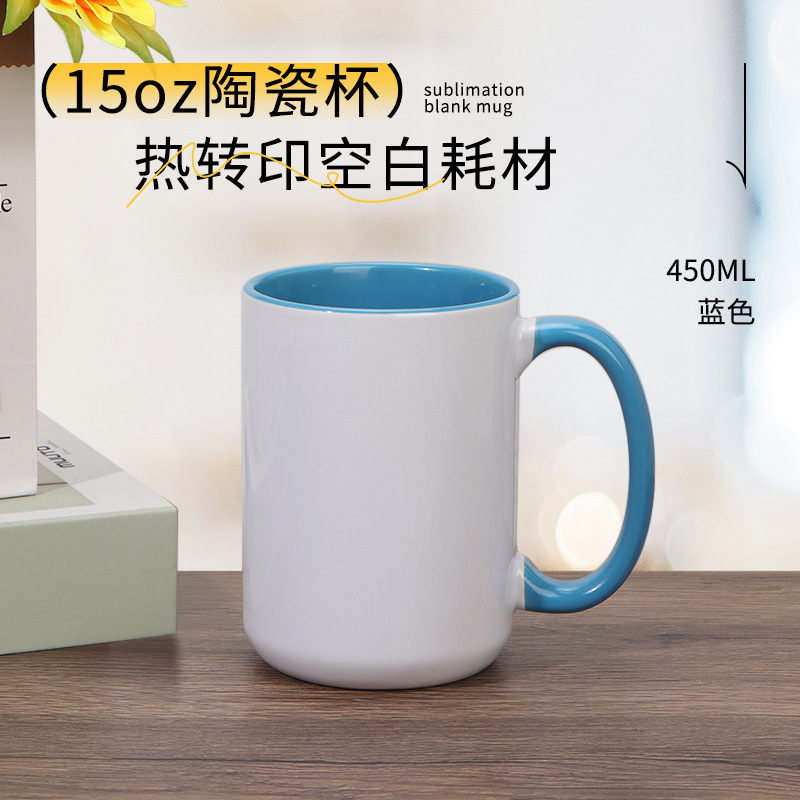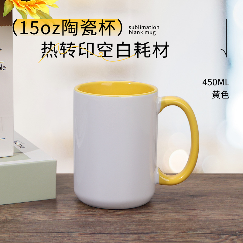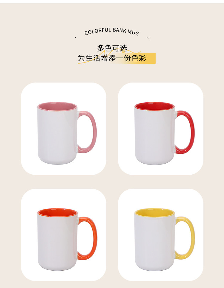 열 전송 컬러 빈 세라믹 컵 15OZ 인쇄 가능한 사진 찻잔 개인화 된 광고 창조적 인 선물 컵스토어 가기