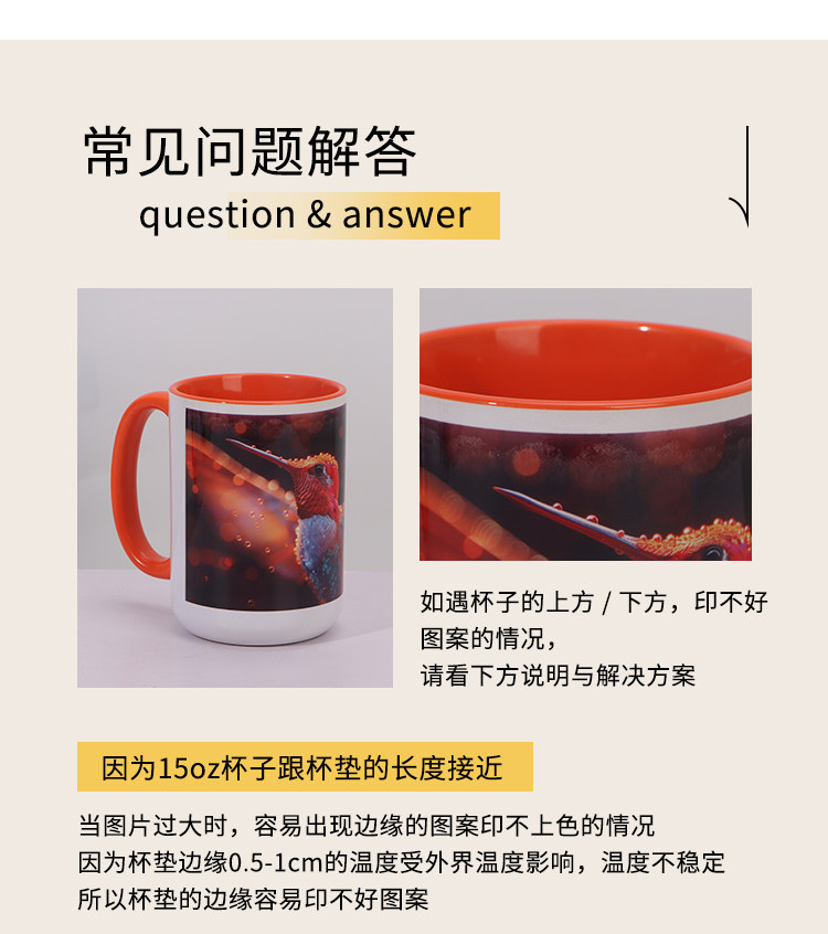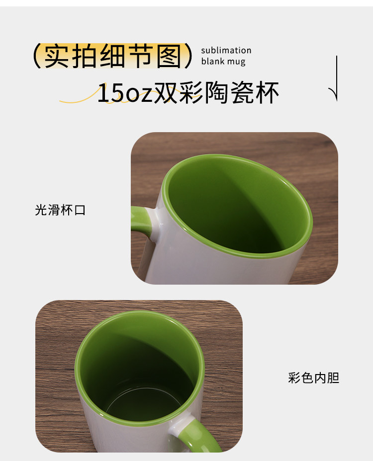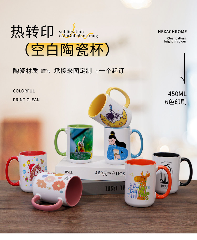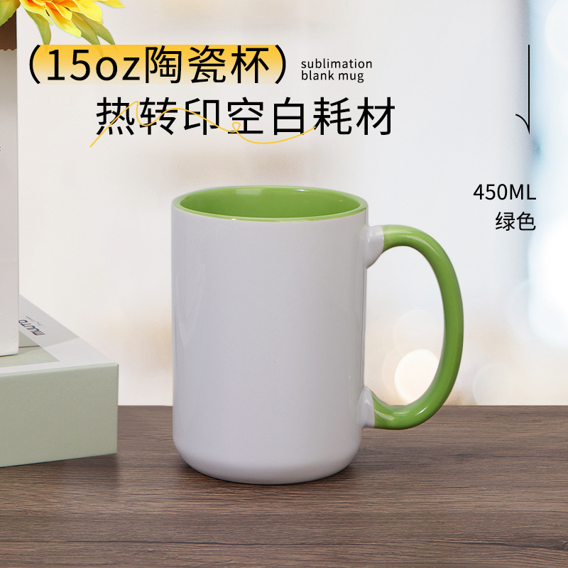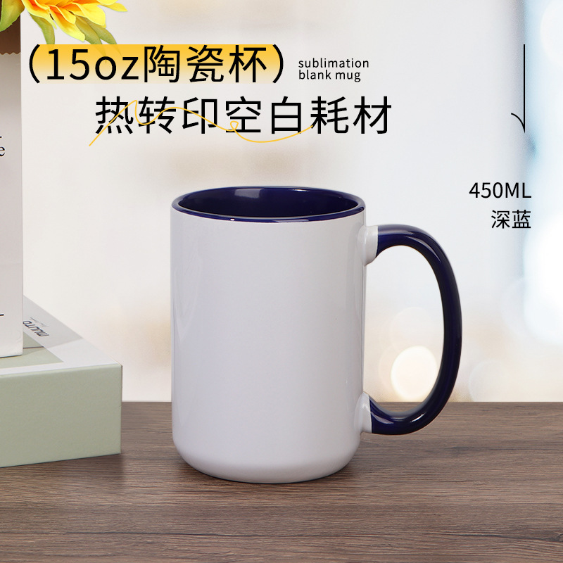 열 전송 컬러 빈 세라믹 컵 15OZ 인쇄 가능한 사진 찻잔 개인화 된 광고 창조적 인 선물 컵스토어 가기