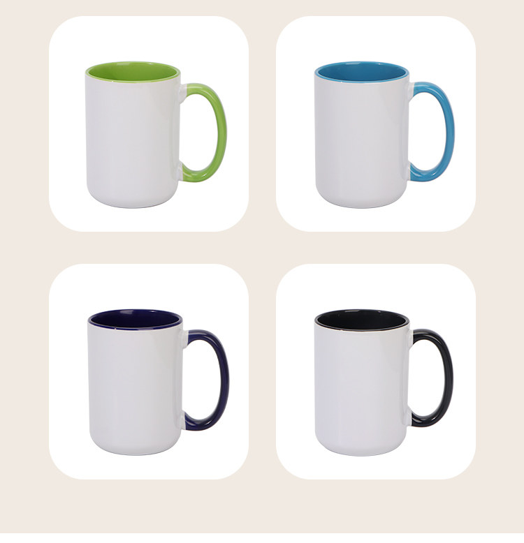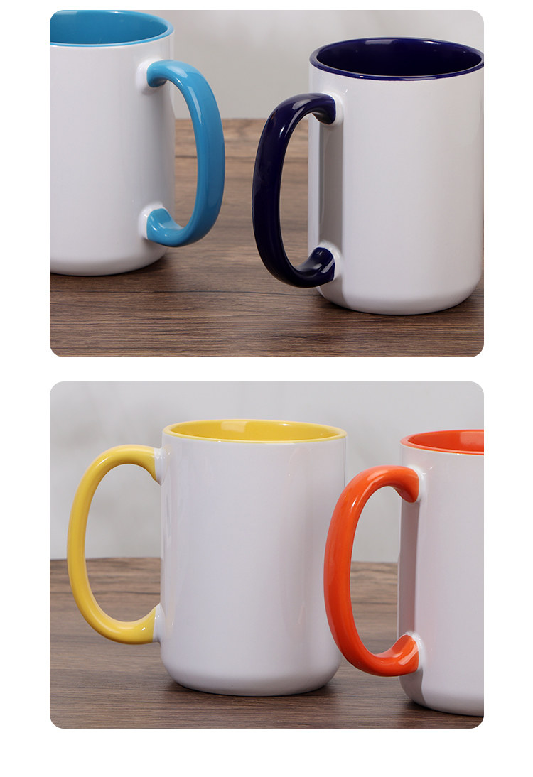 열 전송 컬러 빈 세라믹 컵 15OZ 인쇄 가능한 사진 찻잔 개인화 된 광고 창조적 인 선물 컵