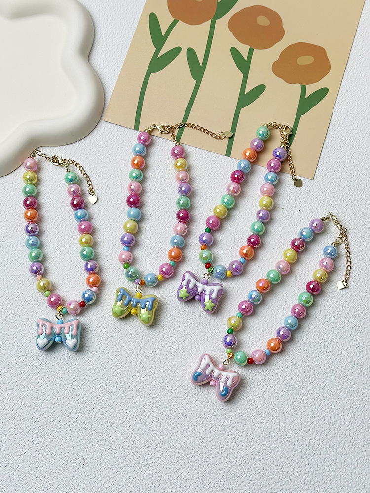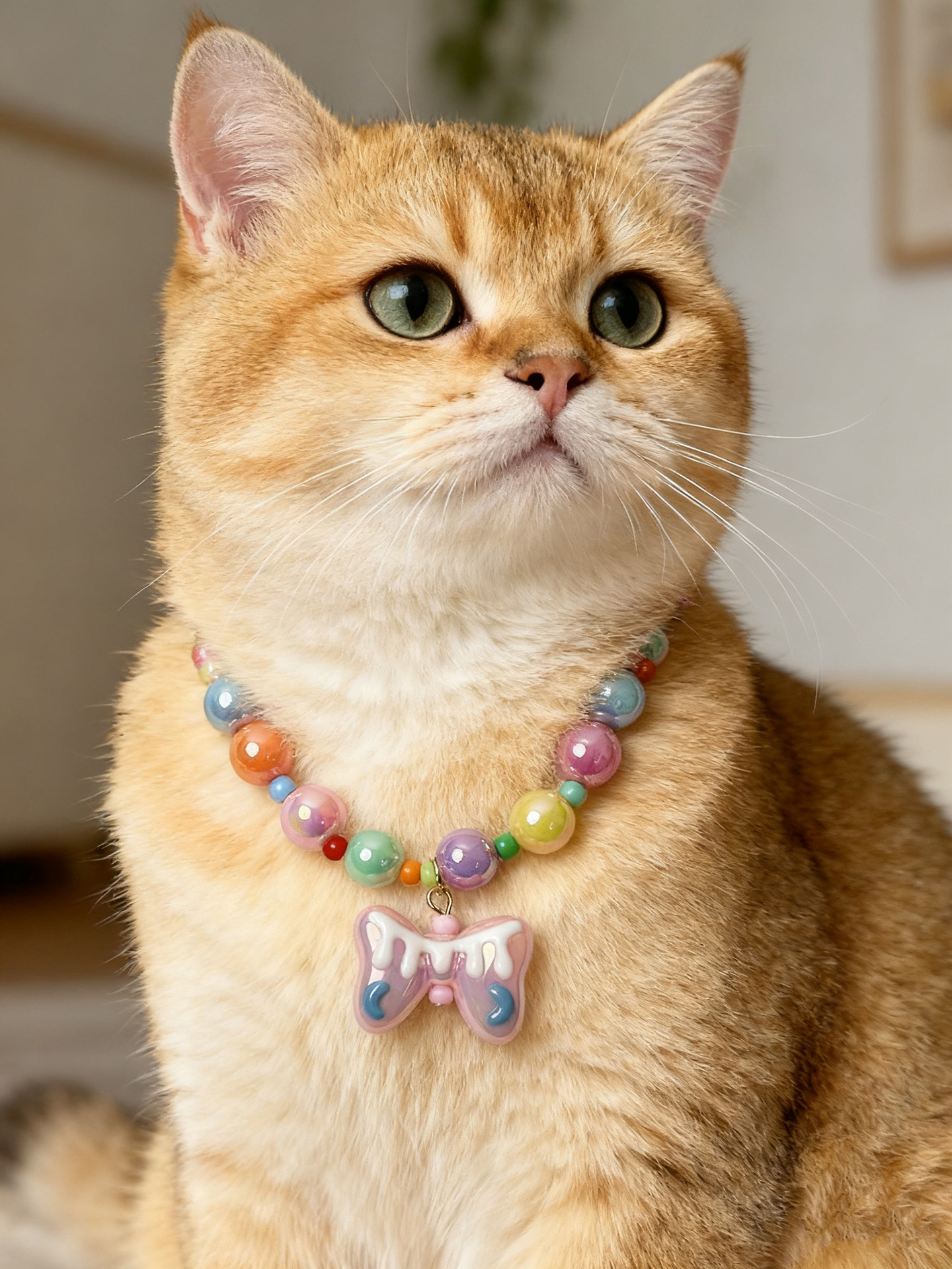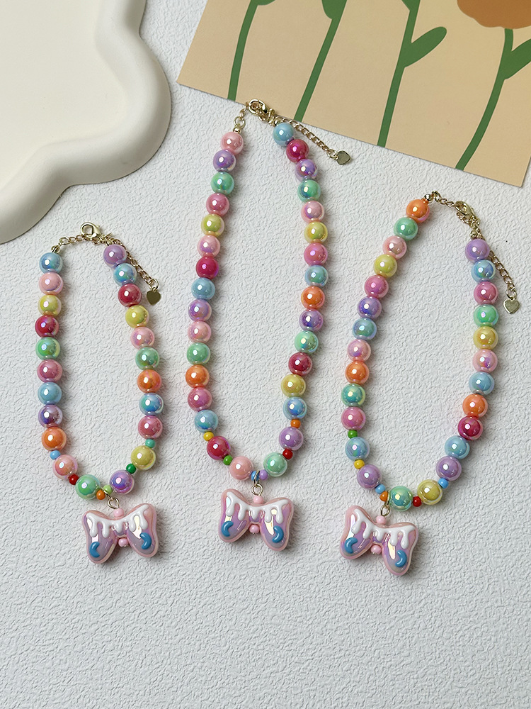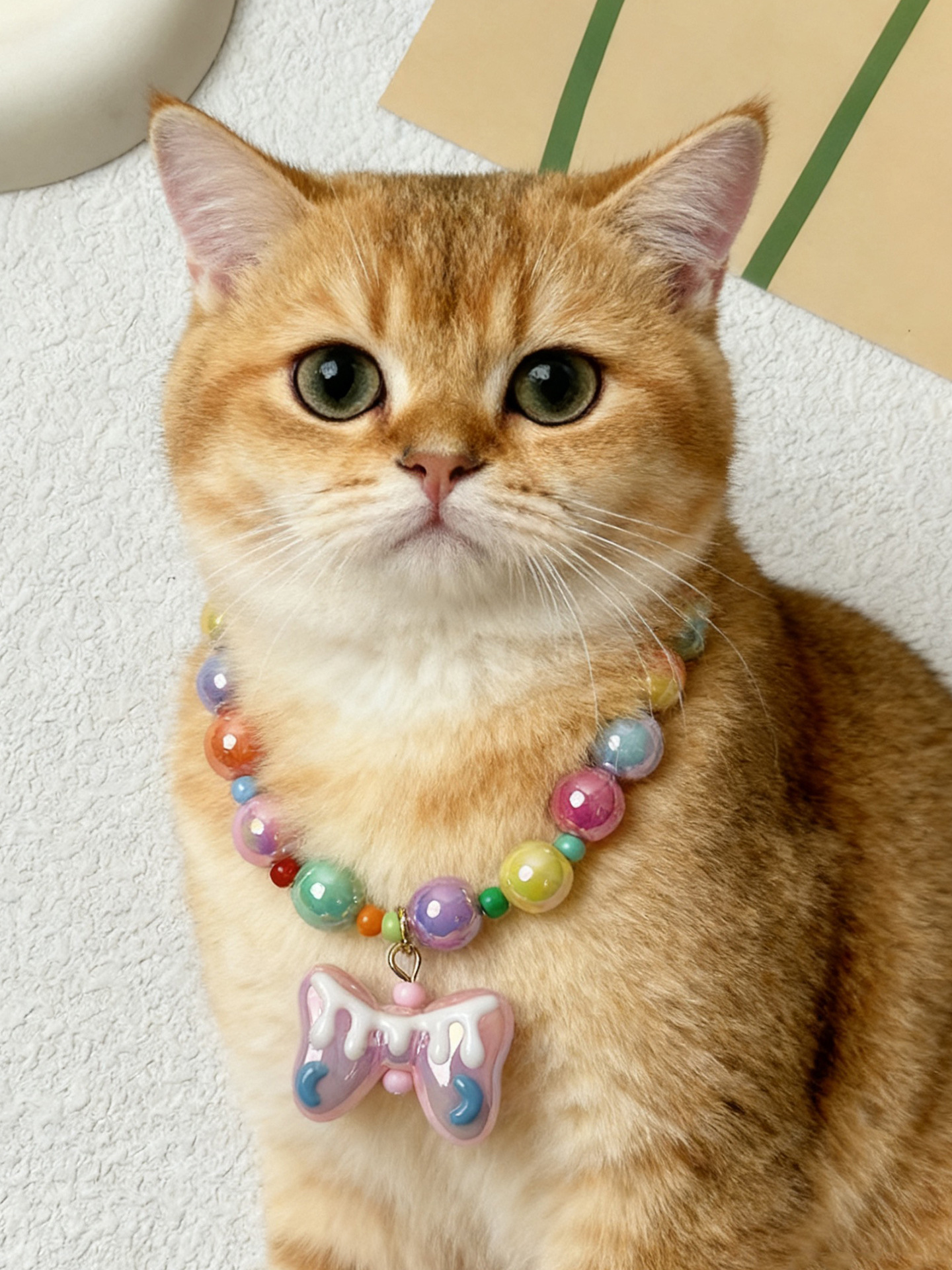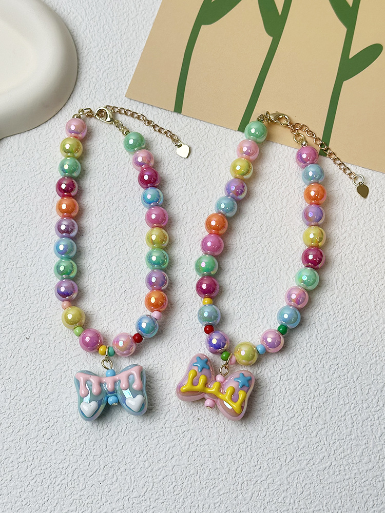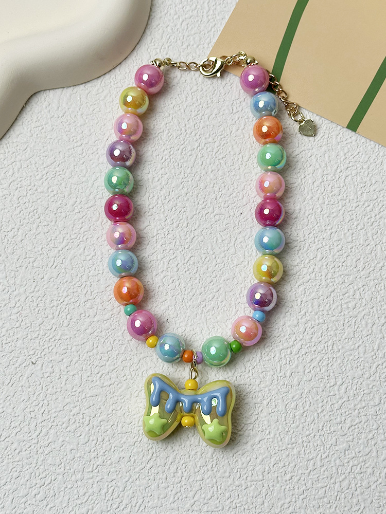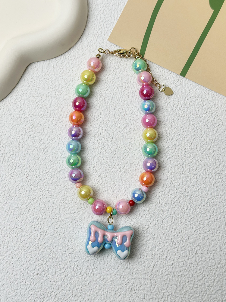 애완 동물 목걸이 달콤한 귀여운 무지개 구슬 고양이 목걸이 개 펜던트 크로스 국경 고양이 목걸이 보석