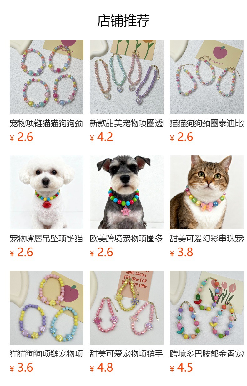 애완 동물 목걸이 달콤한 귀여운 무지개 구슬 고양이 목걸이 개 펜던트 크로스 국경 고양이 목걸이 보석스토어 가기