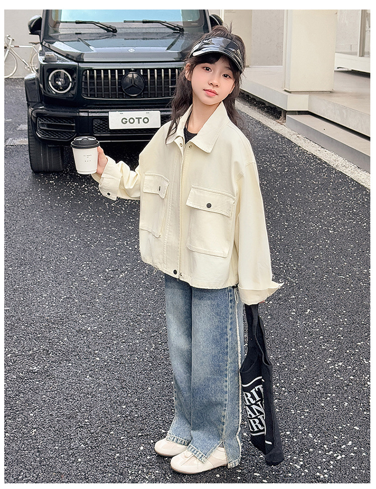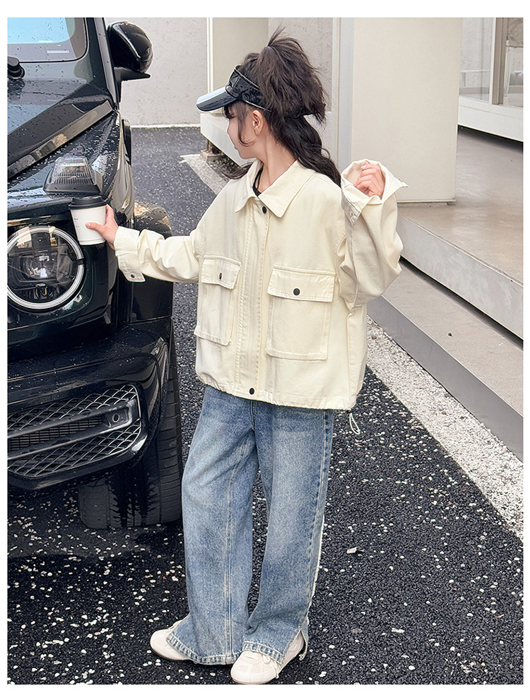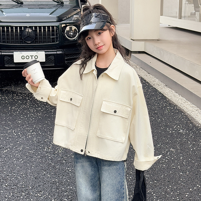 소녀 코트 2025 중대형 어린이 소녀를위한 새로운 도착 올 매치 재킷 봄 및 가을 봄 스타일 느슨한 아동복