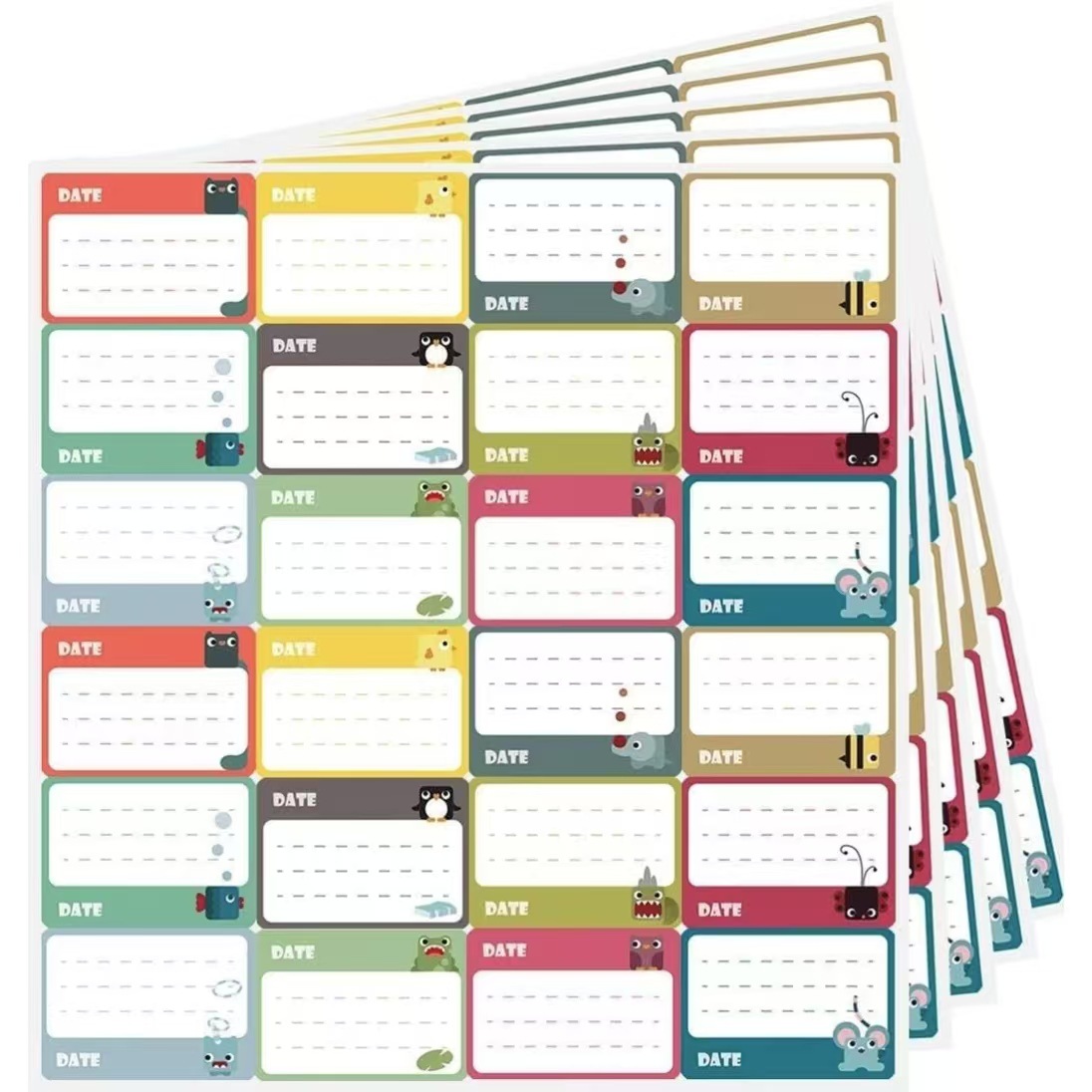 跨境600张食品标签防水耐裂罐子垃圾桶diy装饰贴花12款可爱动物设计可写名字贴纸瓶子容器袋日期贴画
