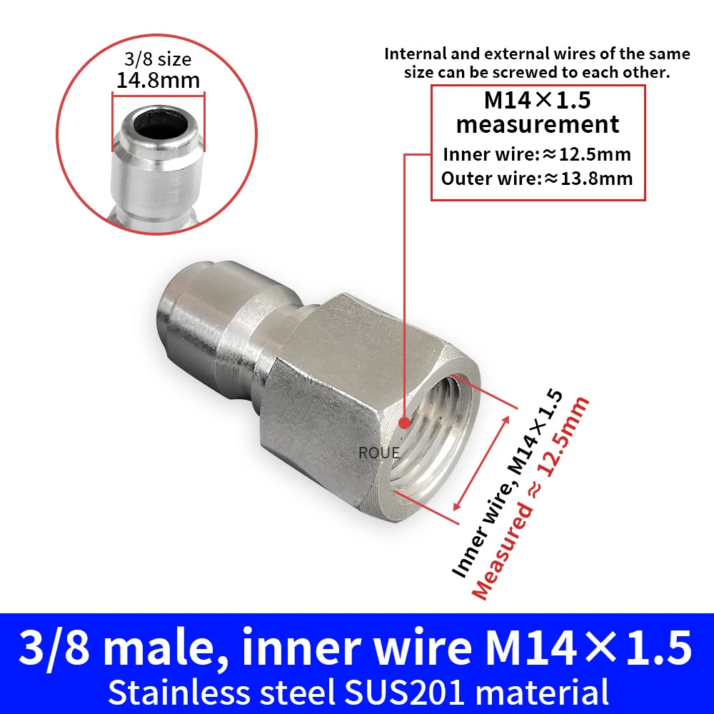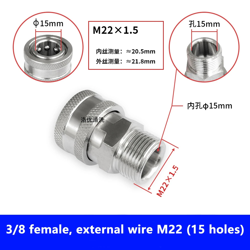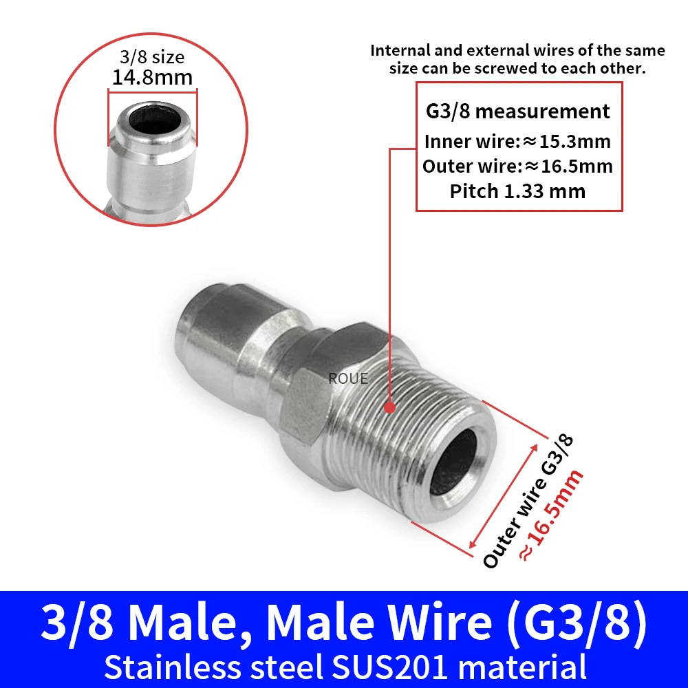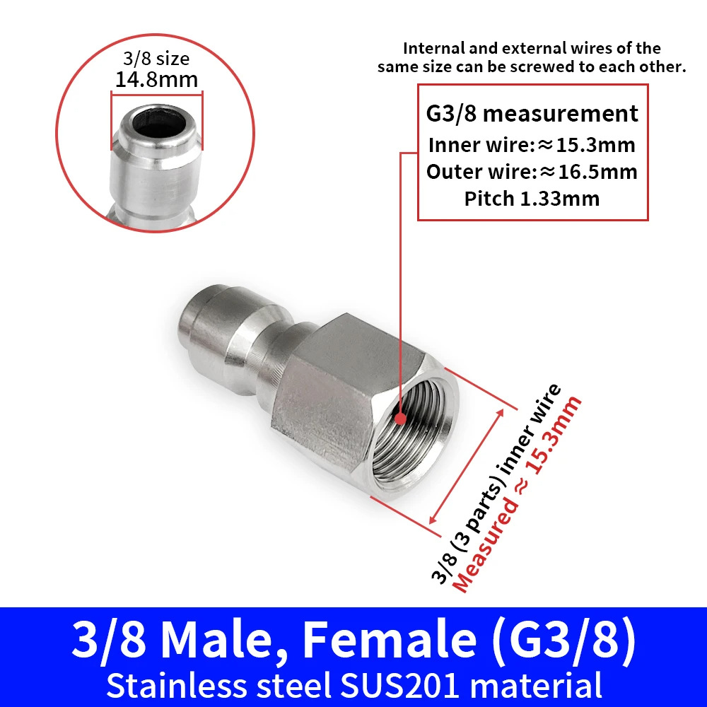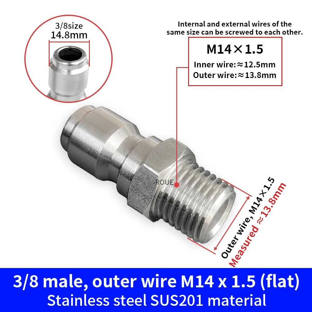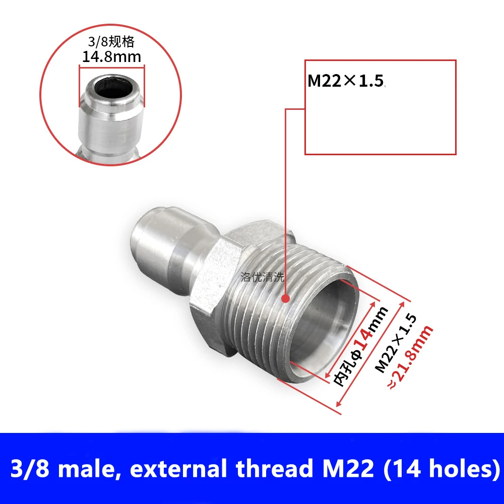 도매 3/8 유연한 남성과 여성 헤드 고압 자동차 세탁기 스테인레스 스틸 빠른 커넥터 청소 기계 물 파이프 빠른 플러그 앤 매치
