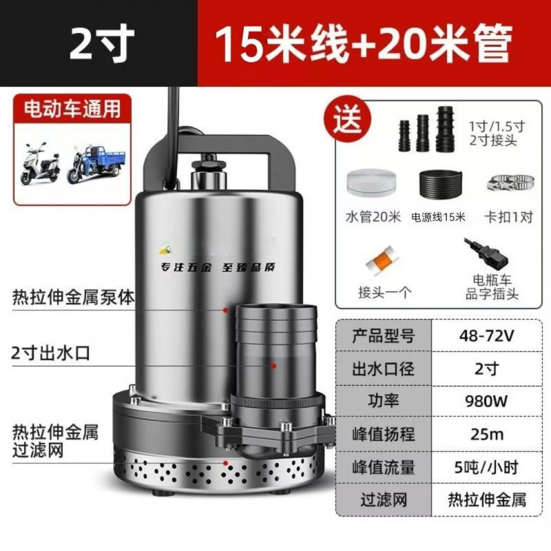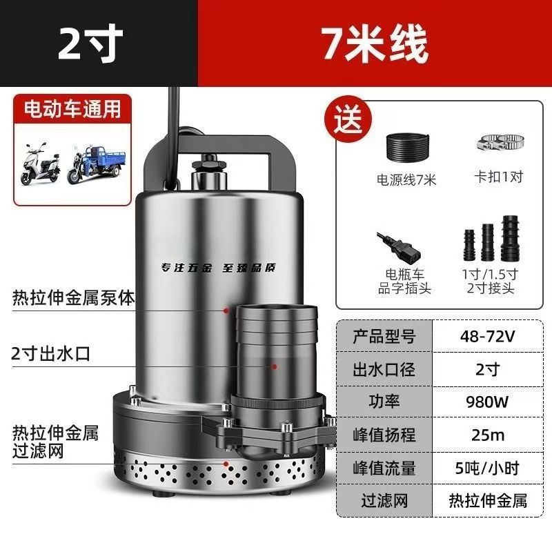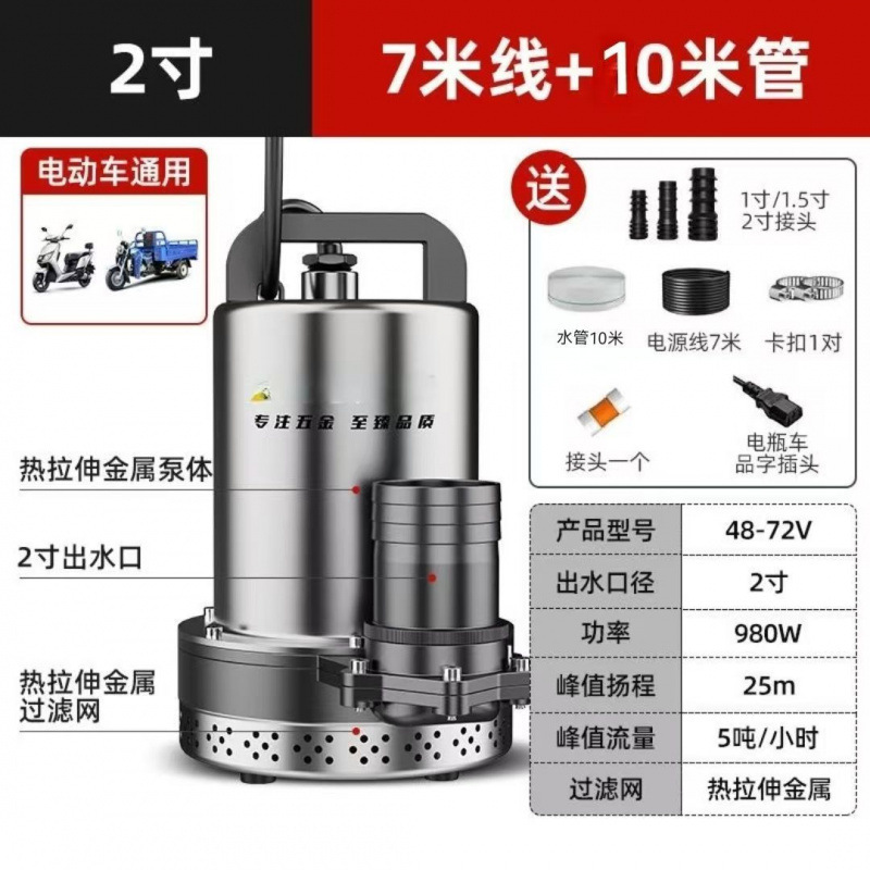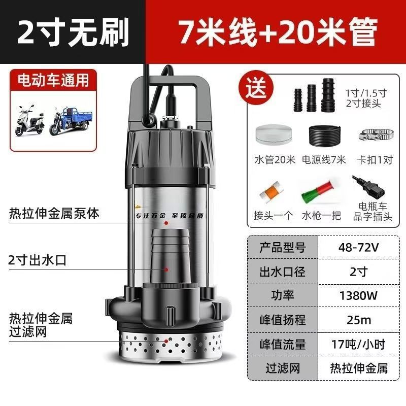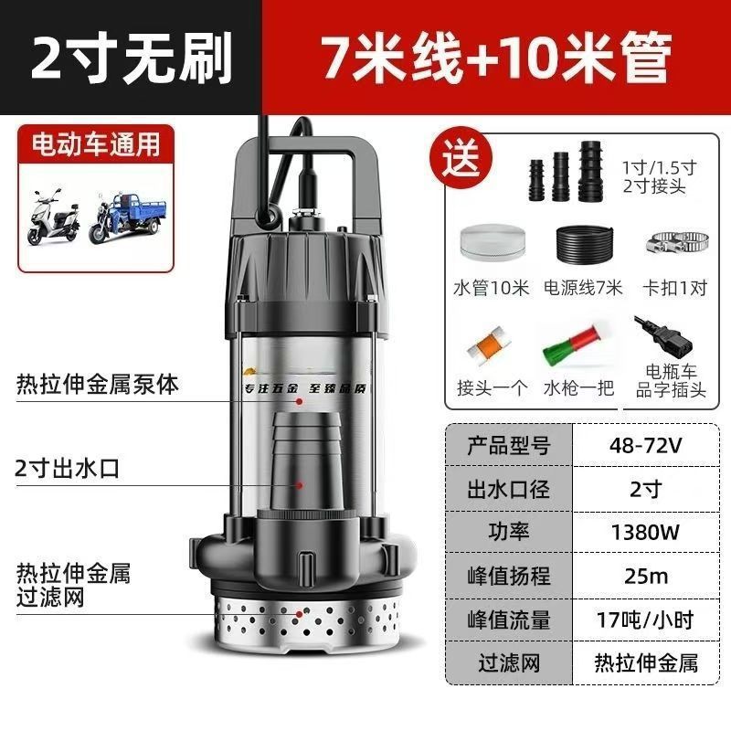 • 인터페이스 포함 2inch 브러시리스(배터리 차량용 범용) 7m 와이어 + 10m 튜브 - 하이 리프트 대형 모터(48-72V) 범용 브랜드 색상 무작위