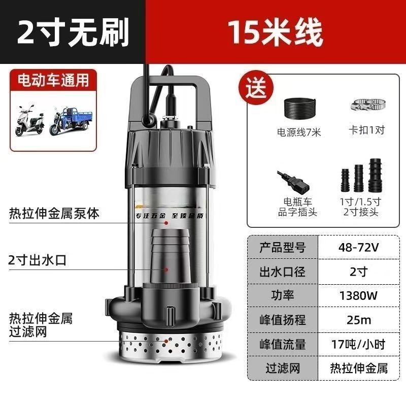 • 인터페이스 포함 2inch 브러시리스(배터리 자동차용 범용 15m 와이어 + 10m 튜브 - 하이 리프트 대형 모터(48-72V) 범용 브랜드 색상 무작위
