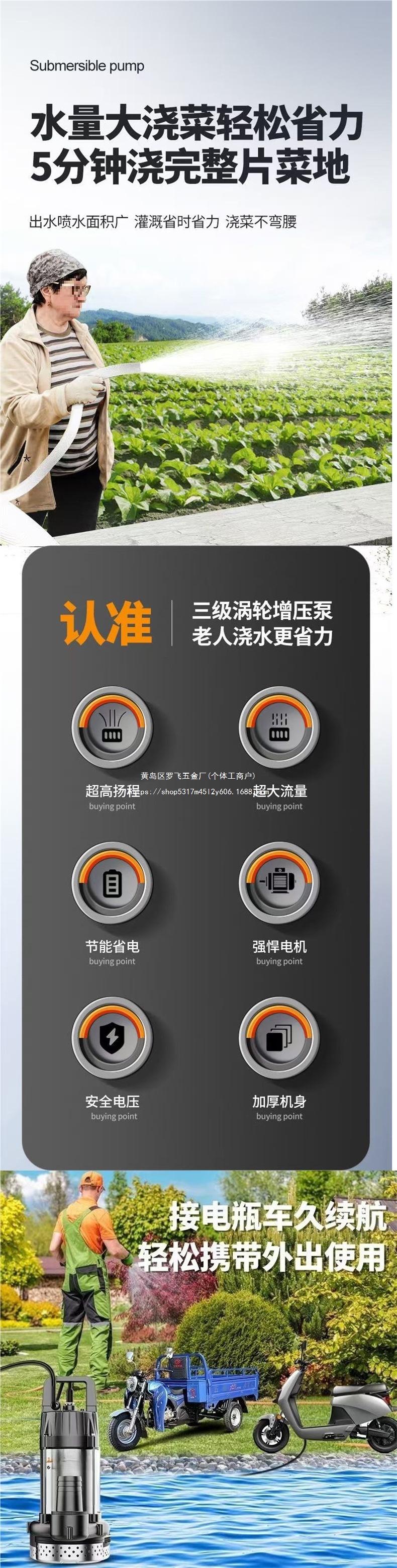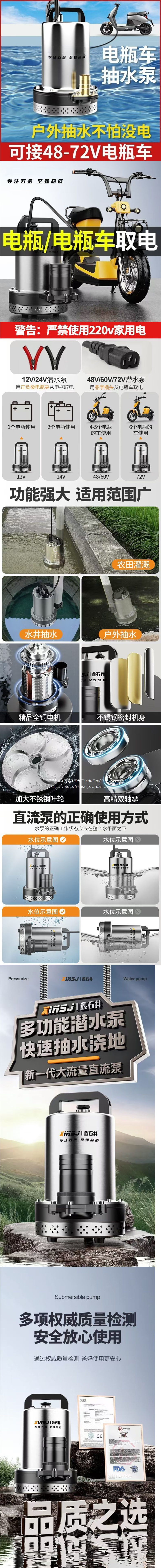 DC 잠수정 펌프 전기 자동차 보편적 인 48-72V 가정용 물 펌프 농업 배터리 자동차 물 펌프 관개