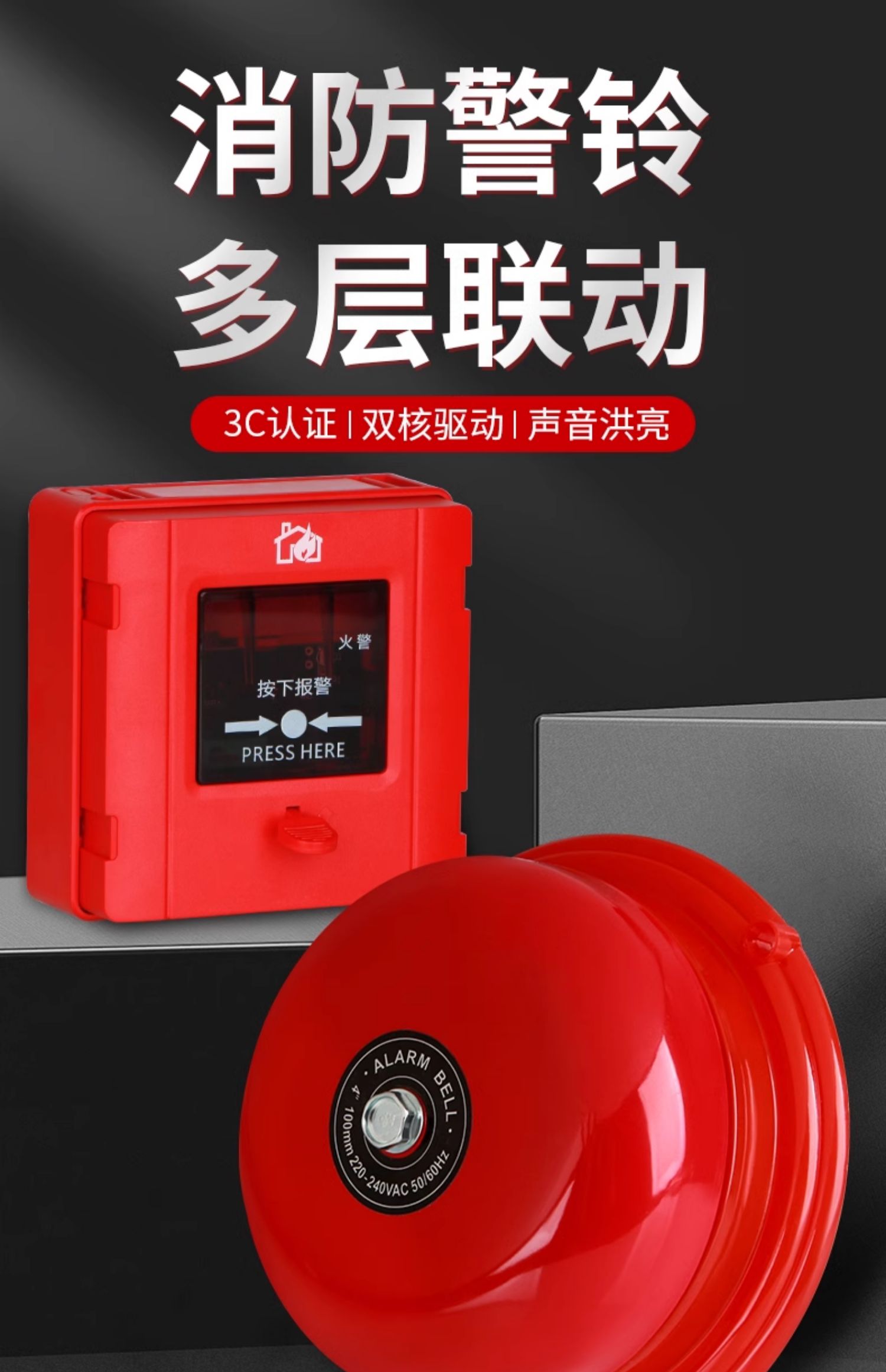 화재 경보 벨 경보 세트 원 키 수동 화재 경보 장치 산업 검사 공장 전기 벨 연결 220V스토어 가기