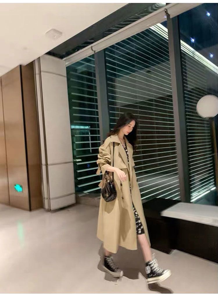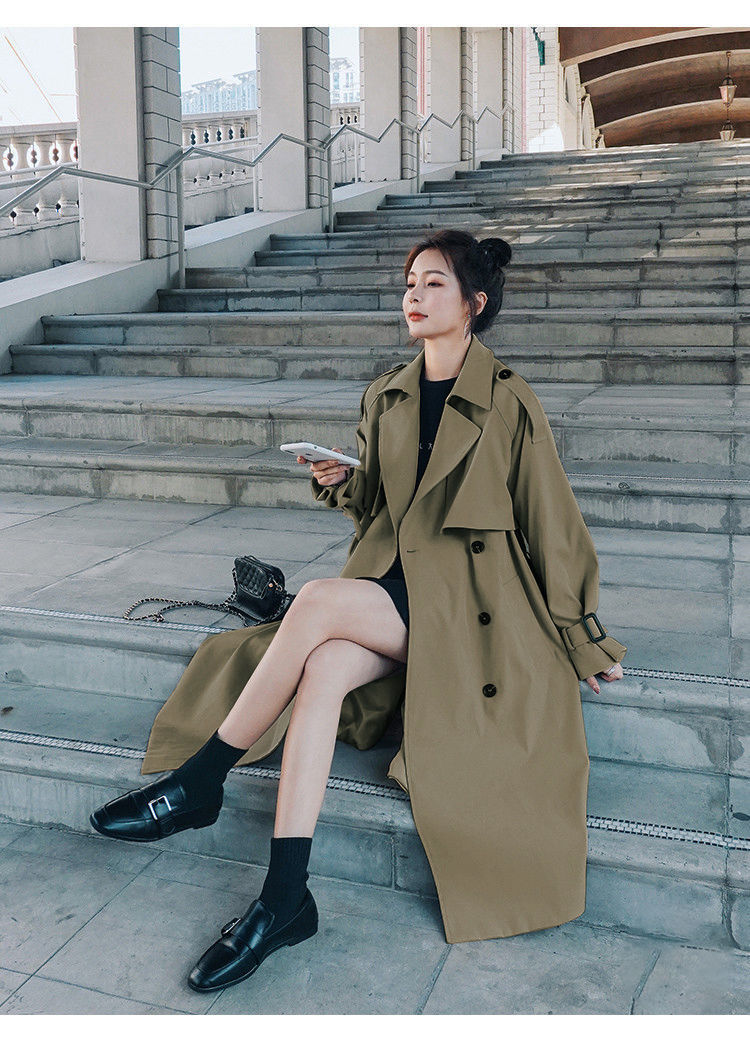 A6Cchic 코트 여성용 중간 길이 2023 봄과 가을 새로운 한국 스타일 하이 엔드 디자인 센스 루즈스토어 가기