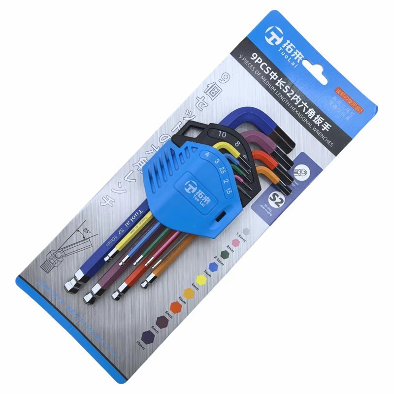 Tuolai 미터법 강화 L자형 컬러 볼 헤드 육각 렌치 세트, 특수 길이 육각 키 세트, 고경도스토어 가기