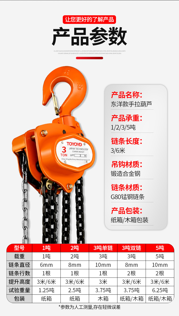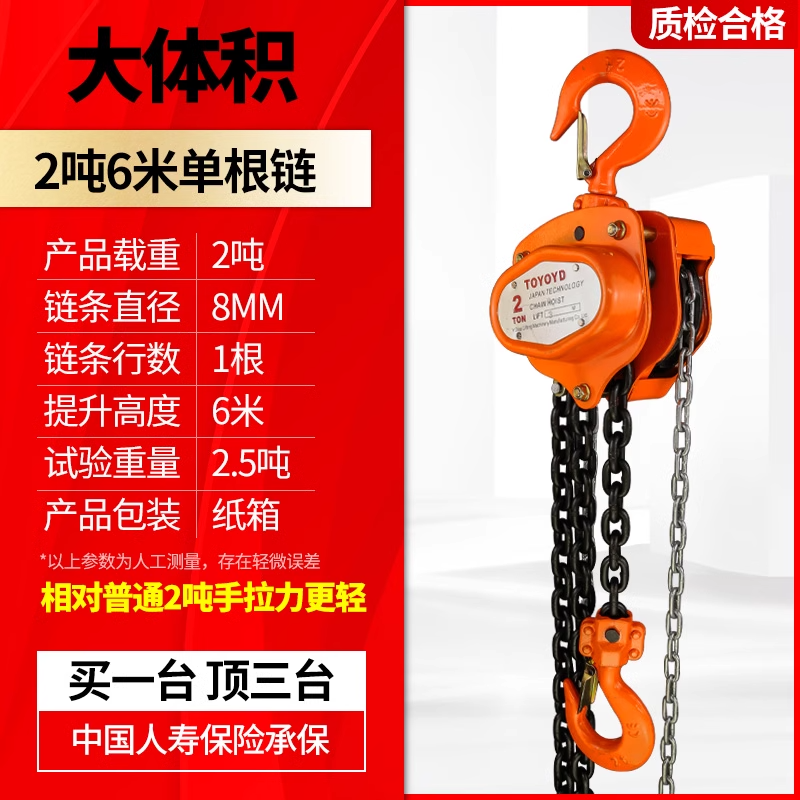 수입 Toyo TOYYYD 체인 블록 1 톤 2t 리프팅 체인 6 미터 소형 크레인 삼각형 수동 호이스트