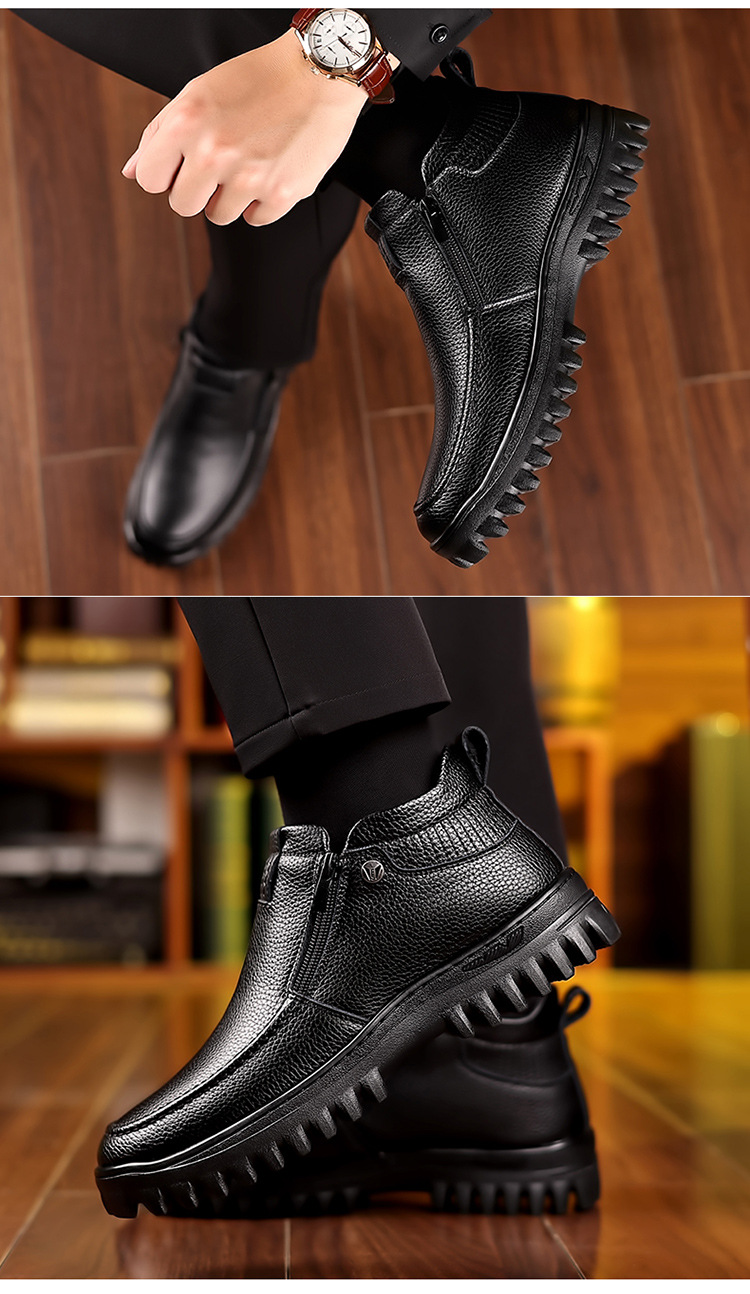 2025 겨울 플러스 사이즈 남성 신발 캐주얼 코튼 가죽 신발 남성용 45 따뜻한 하이 탑 기모 코튼 부츠 남성용 미끄럼 방지 아빠 신발 46스토어 가기
