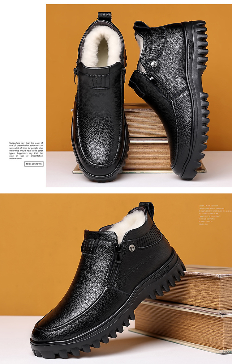 2025 겨울 플러스 사이즈 남성 신발 캐주얼 코튼 가죽 신발 남성용 45 따뜻한 하이 탑 기모 코튼 부츠 남성용 미끄럼 방지 아빠 신발 46