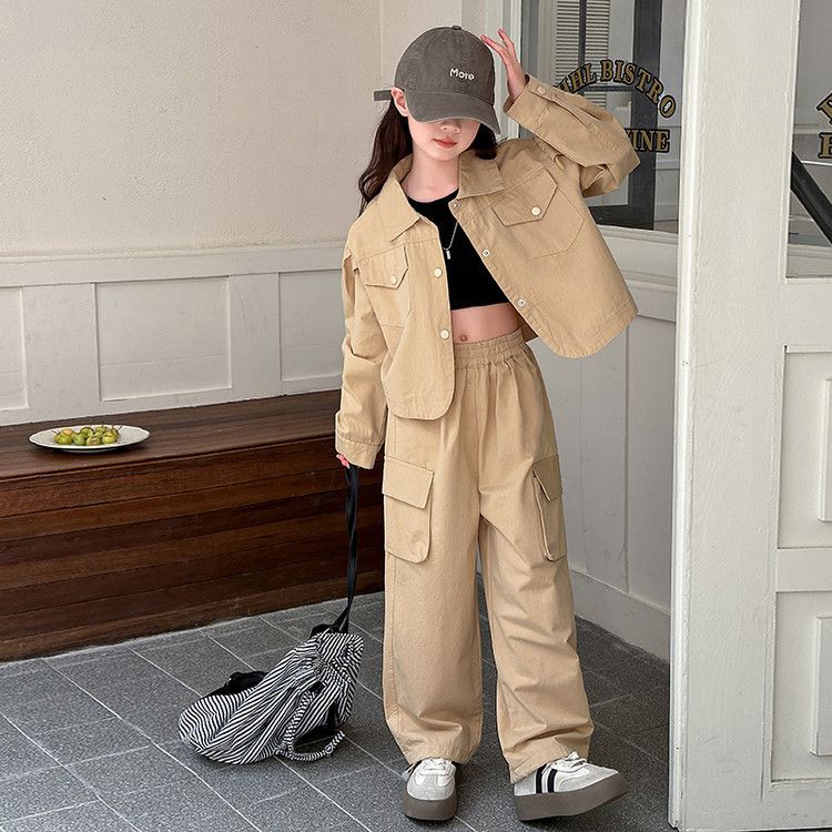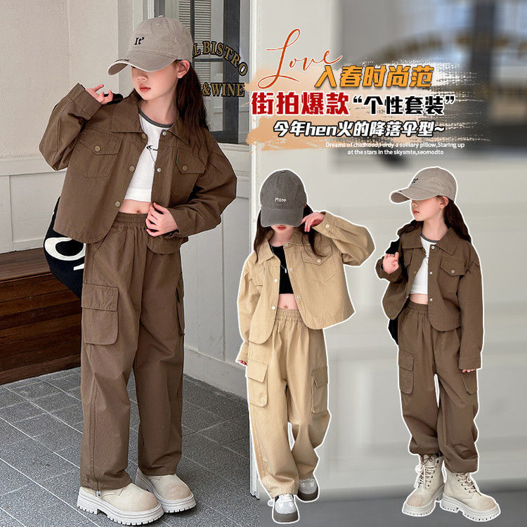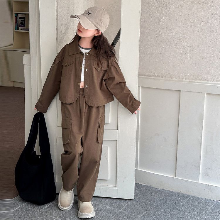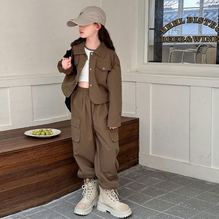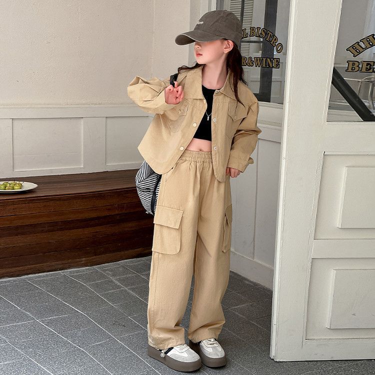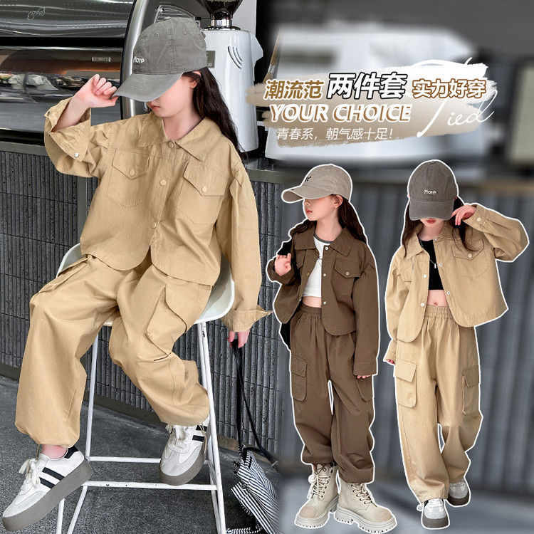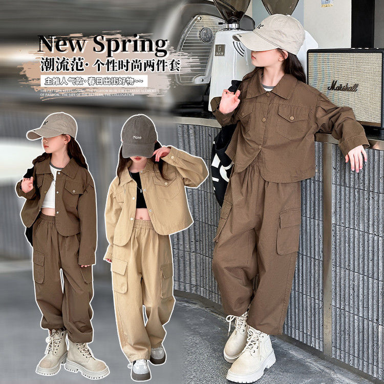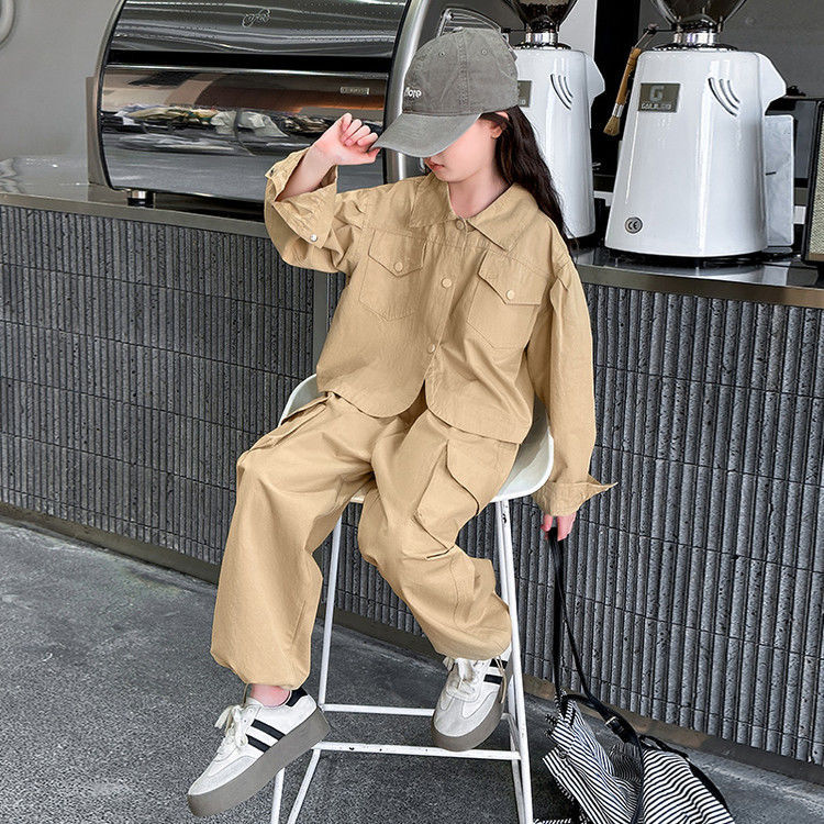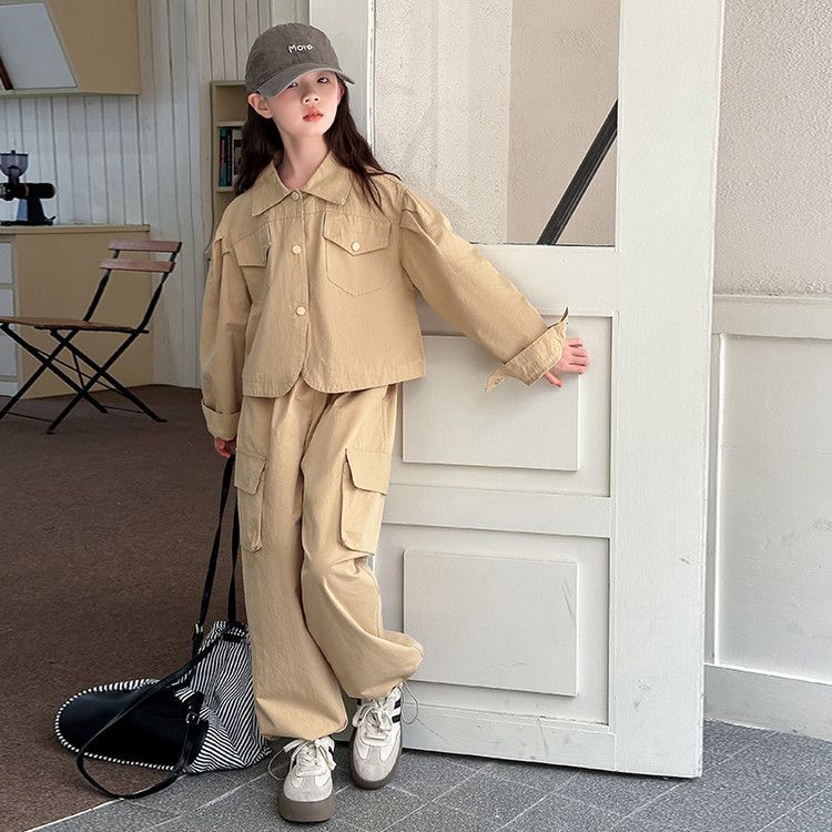 소녀 캐주얼 세트 봄과 가을 2025 새로운 어린이 서양식 쿠션 바지 대형 어린이 소녀 봄 투피스 세트스토어 가기