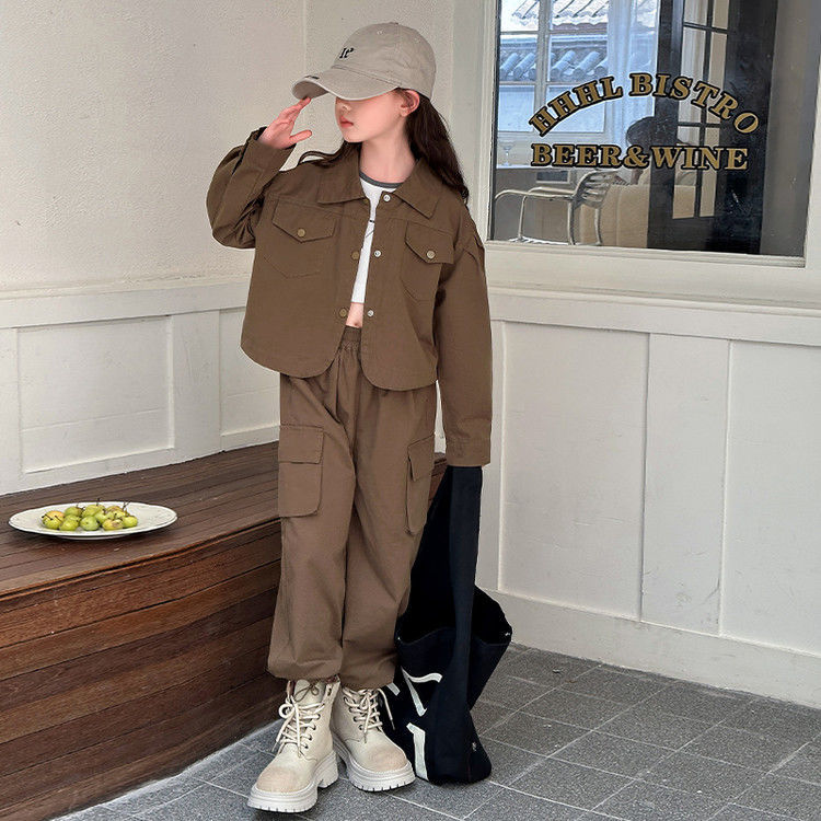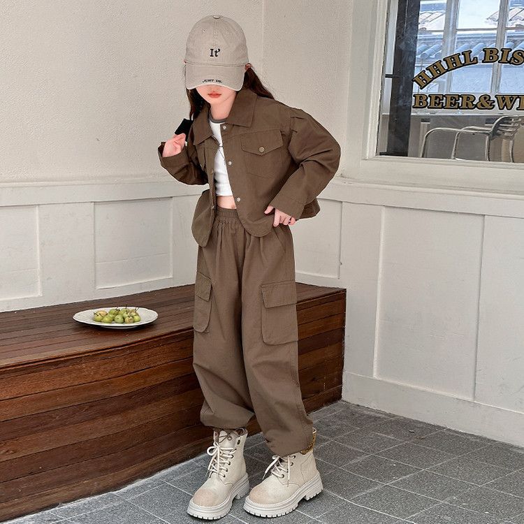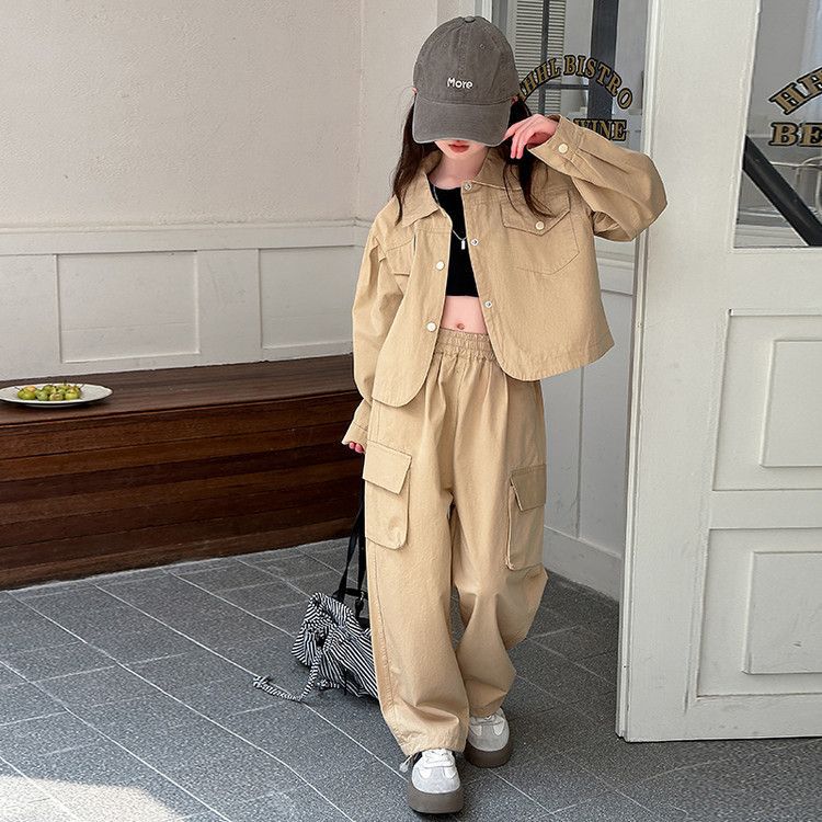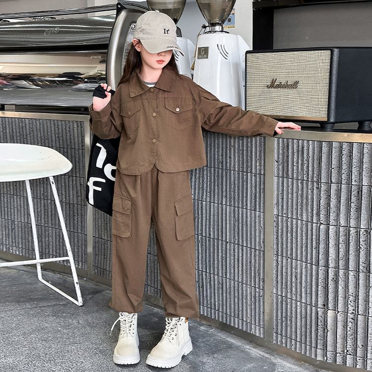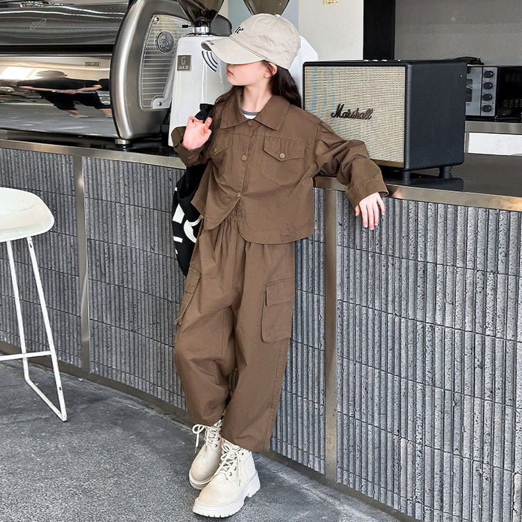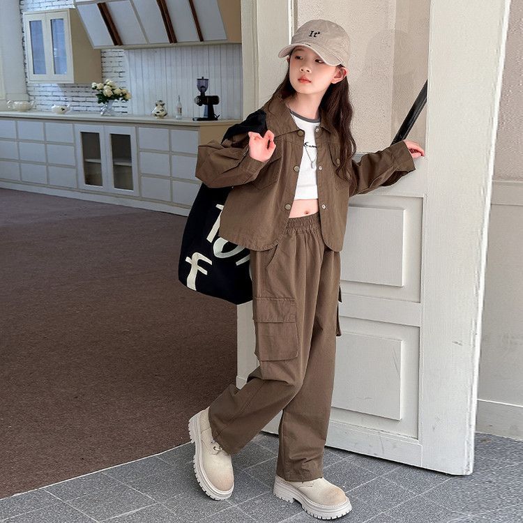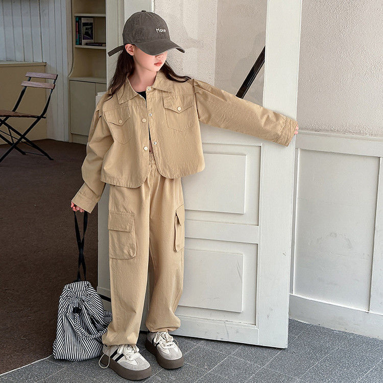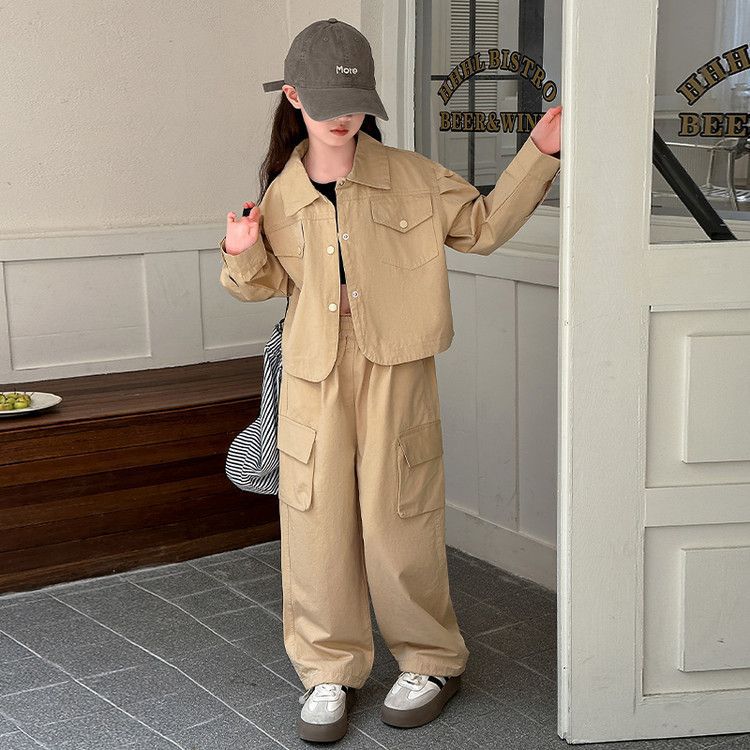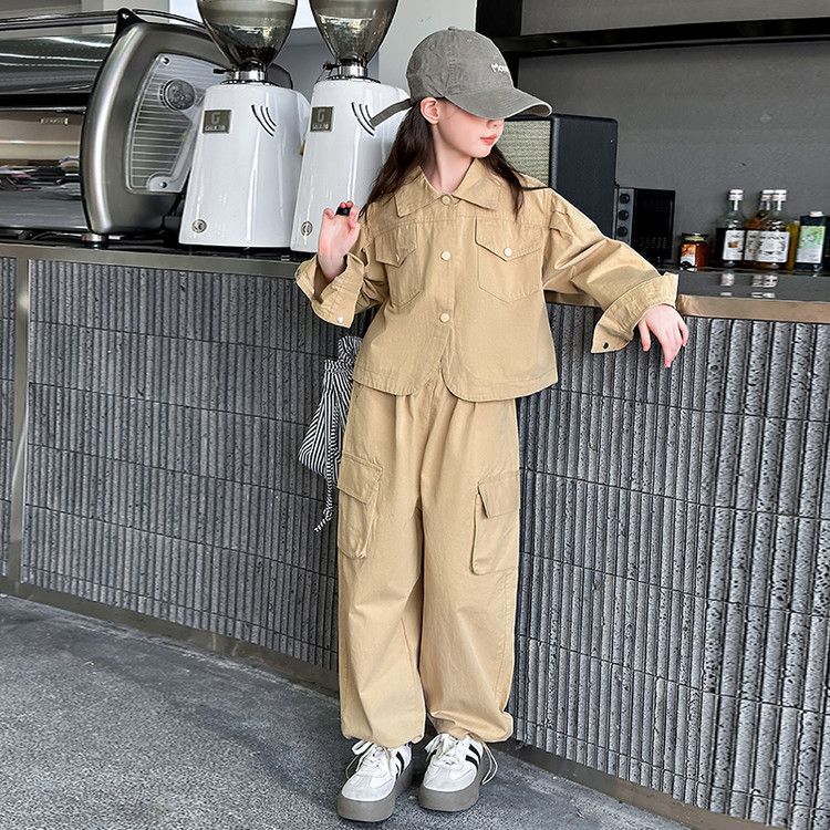 소녀 캐주얼 세트 봄과 가을 2025 새로운 어린이 서양식 쿠션 바지 대형 어린이 소녀 봄 투피스 세트스토어 가기