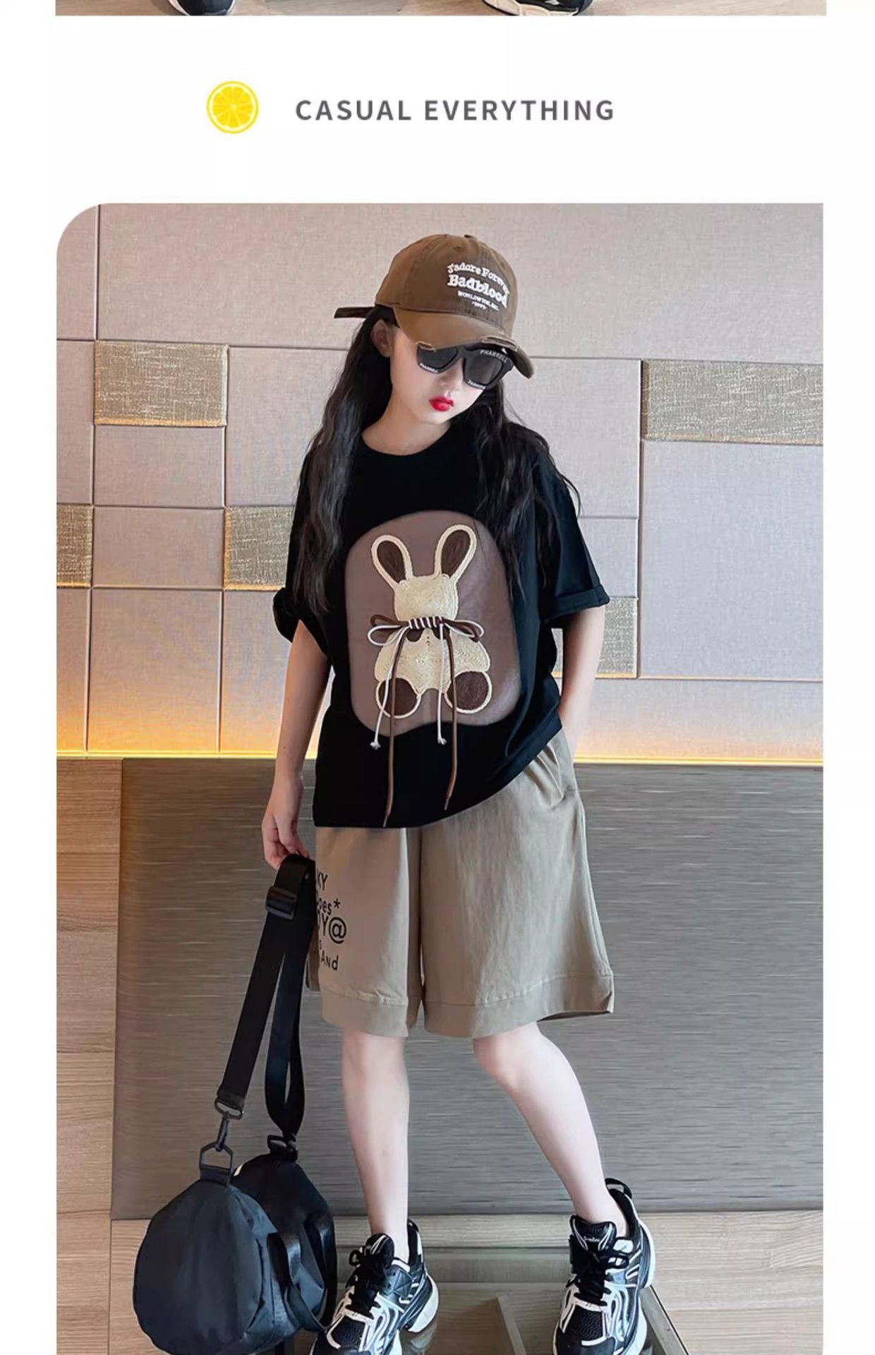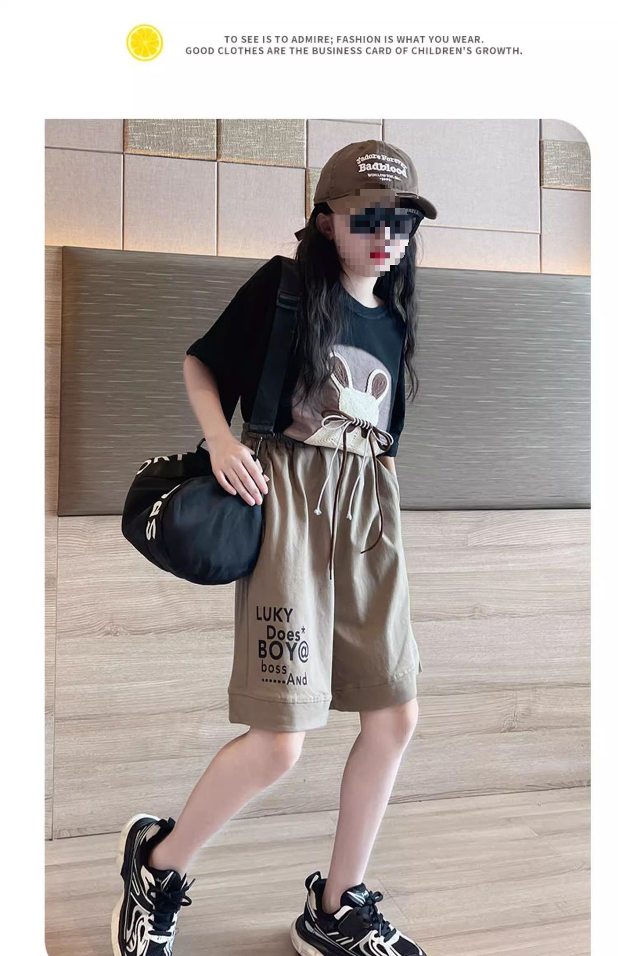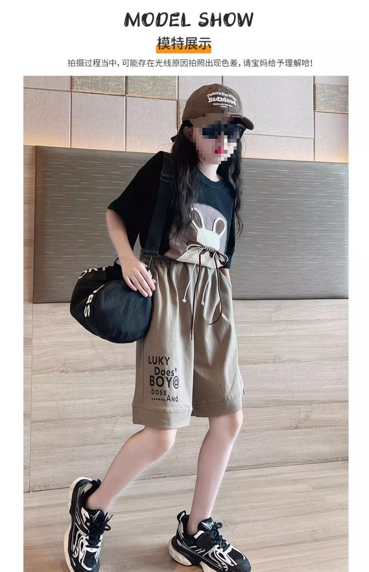 여자 여름 만화 티셔츠 5 점 바지 투피스 세트 2025 새로운 한국 스타일 얇은 스포츠 세트 트렌디스토어 가기