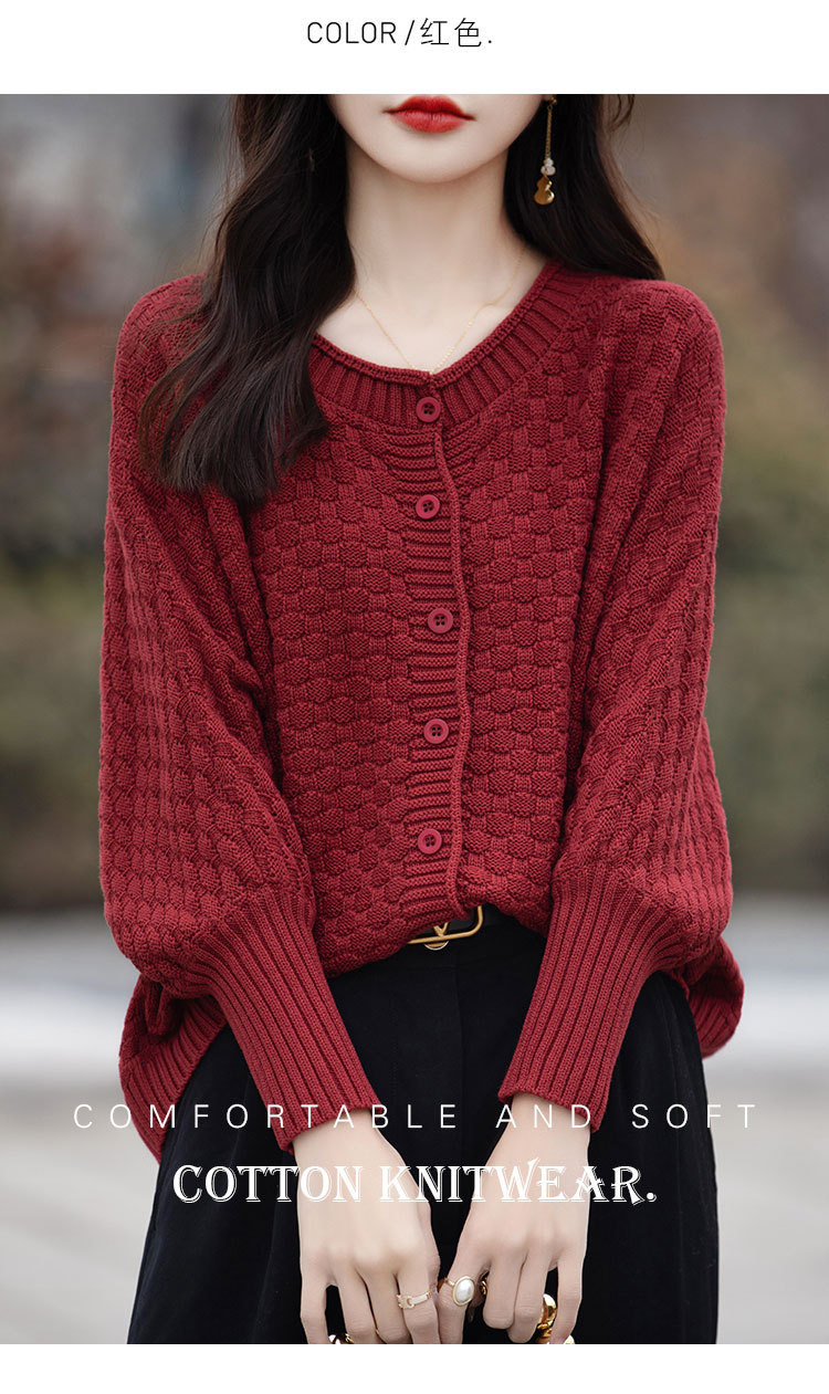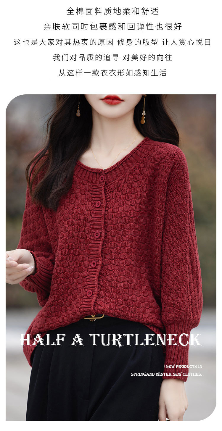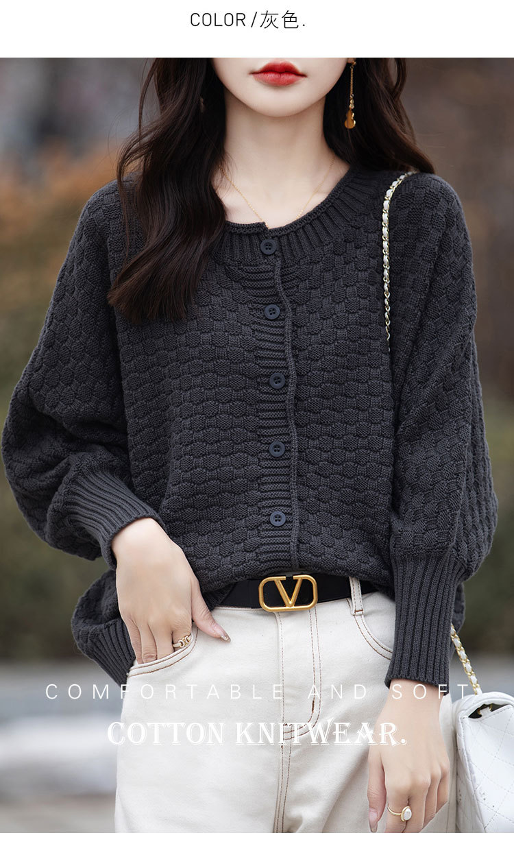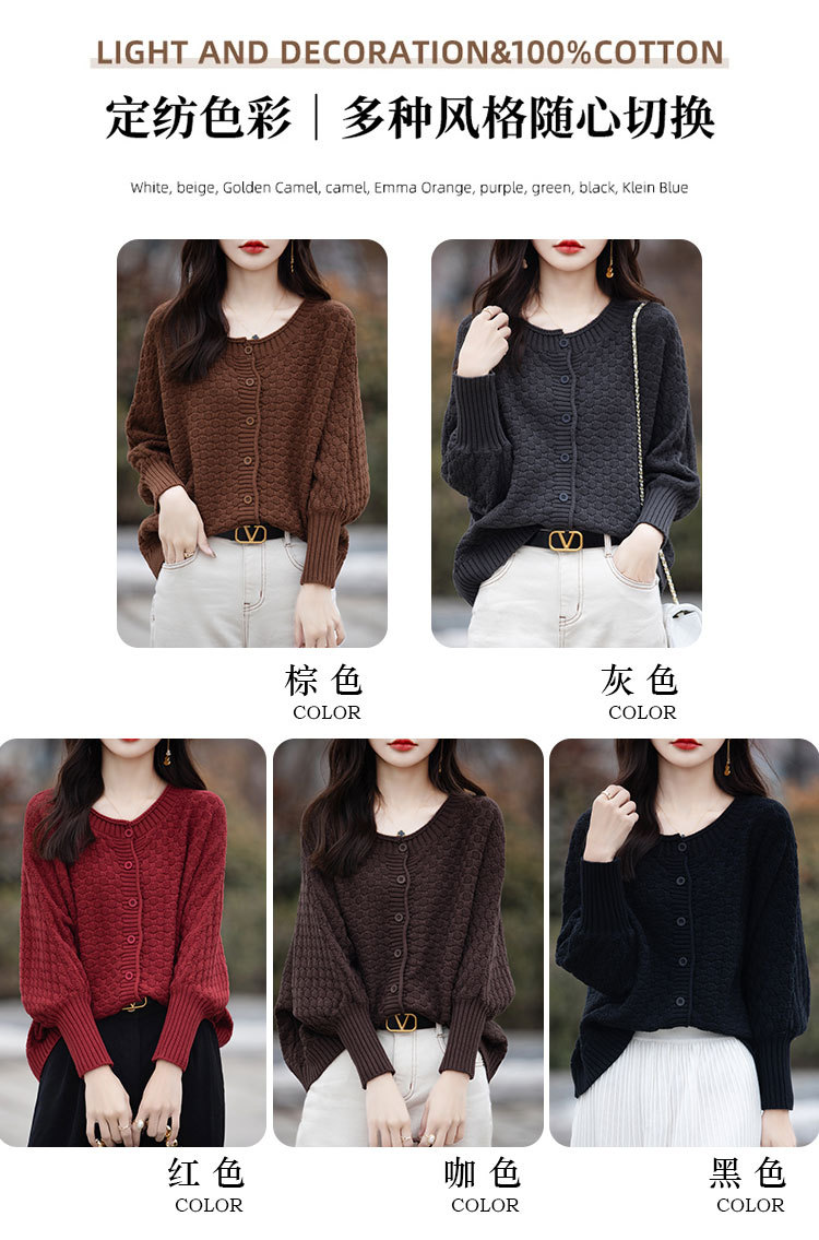 1 개의 원피스 투웨어 2025 봄 새로운 도착 배팅 슬리브 니트 카디건 여자 짧은 느슨한 올매치 코튼 코트