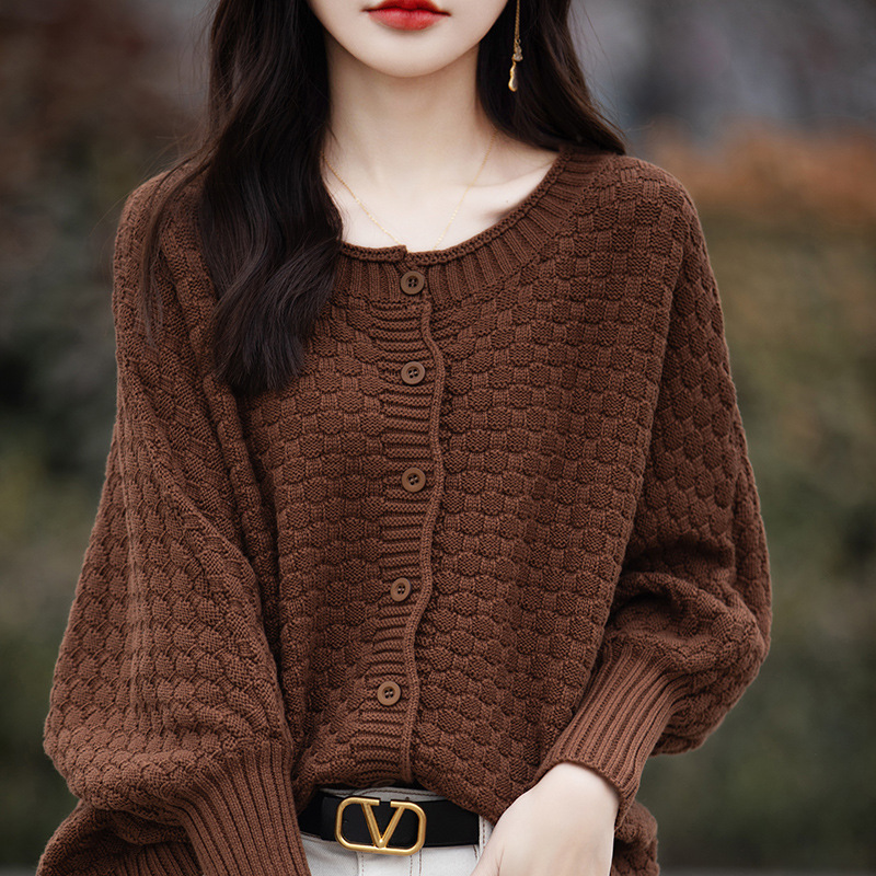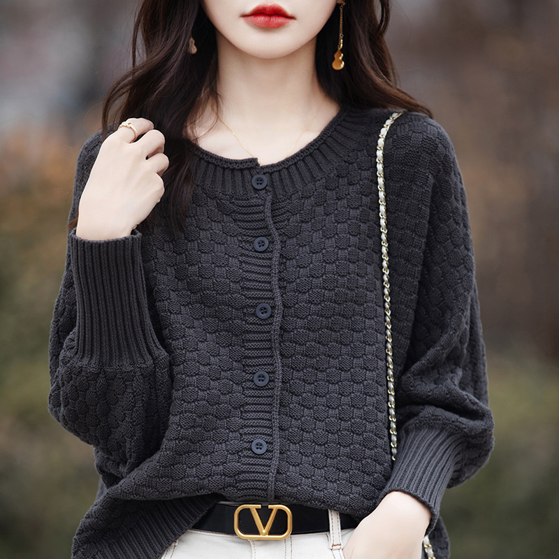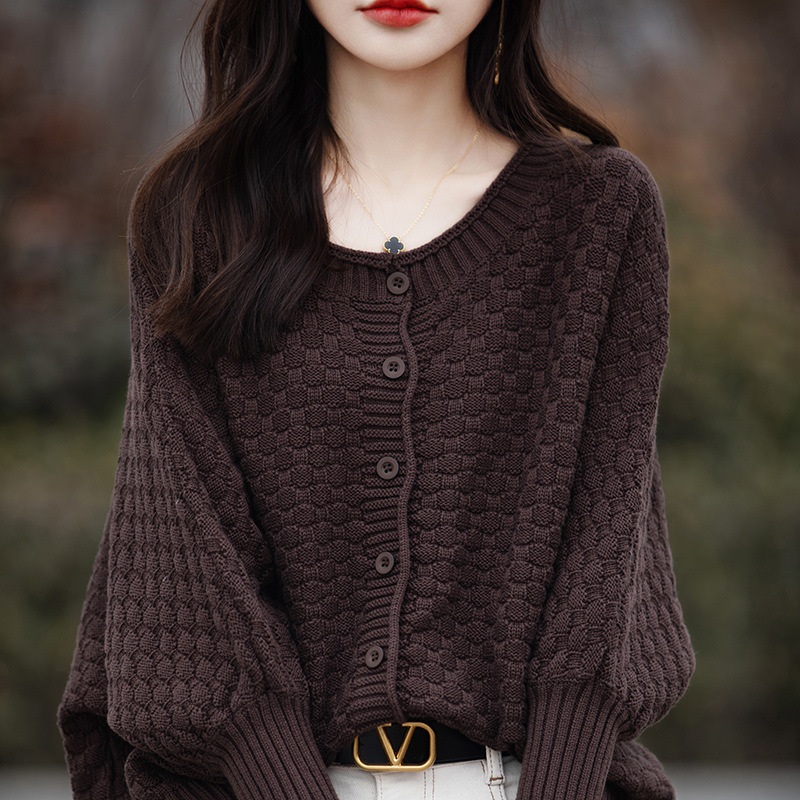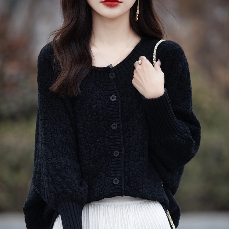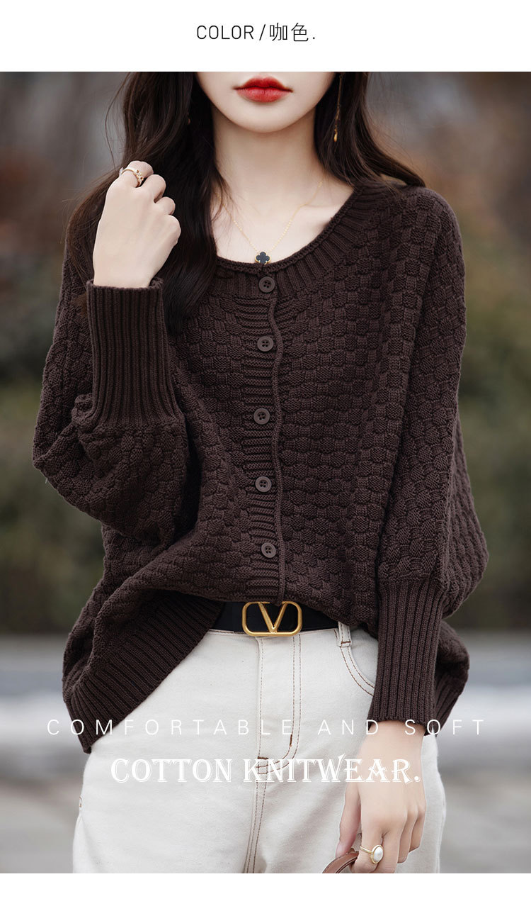 1 개의 원피스 투웨어 2025 봄 새로운 도착 배팅 슬리브 니트 카디건 여자 짧은 느슨한 올매치 코튼 코트