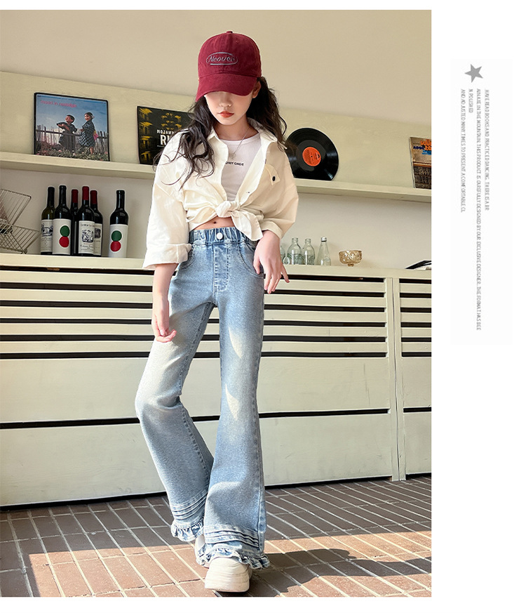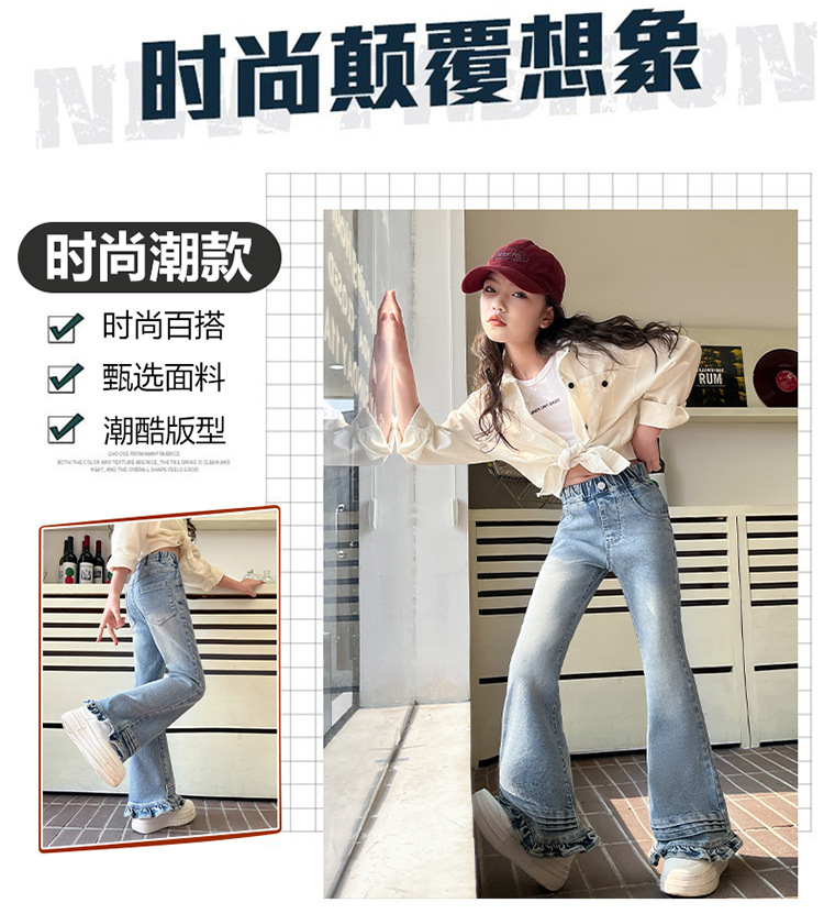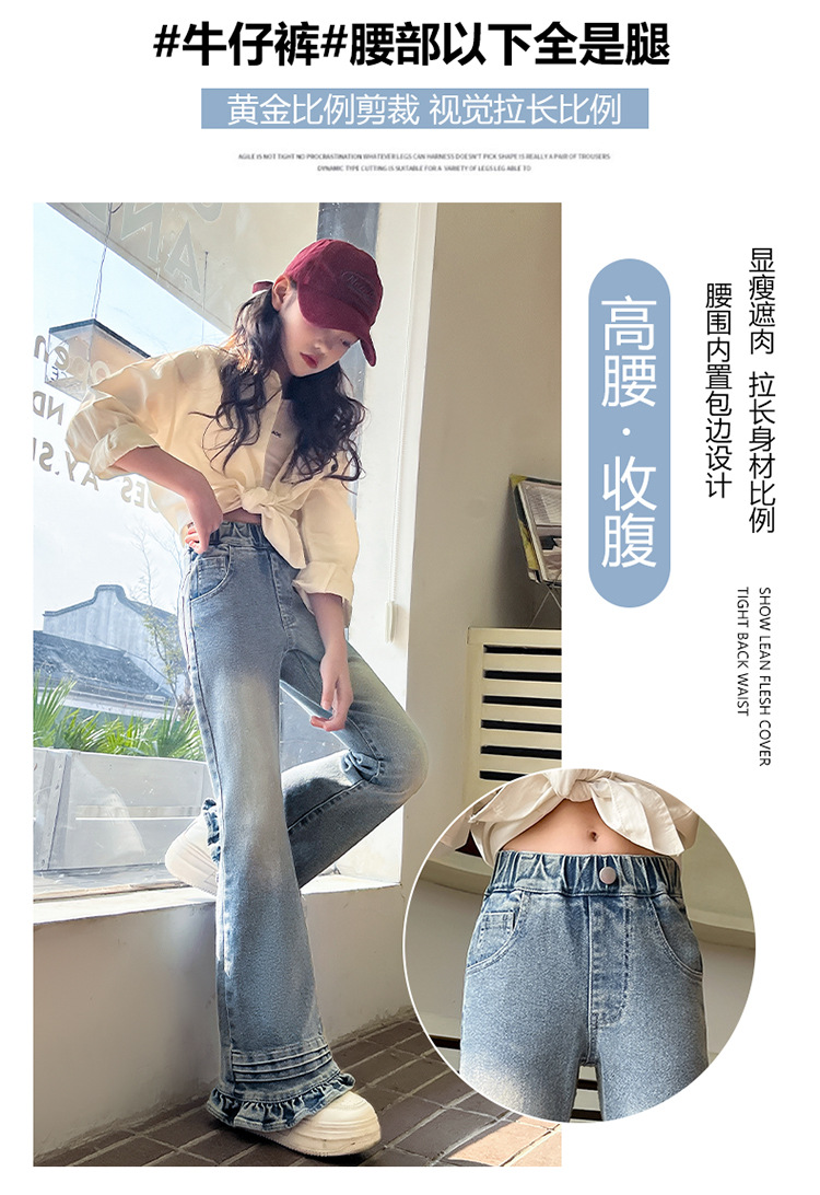 소녀 바지 봄 한국식 어린이 서양식 올매치 걸스 슬림 핏 슬리밍 데님 플레어 팬츠 유행 Huzhou Zhili