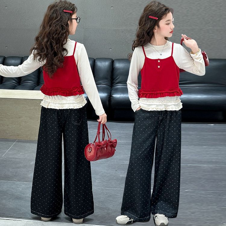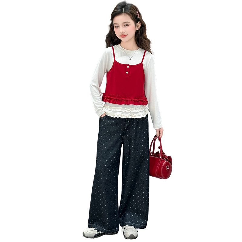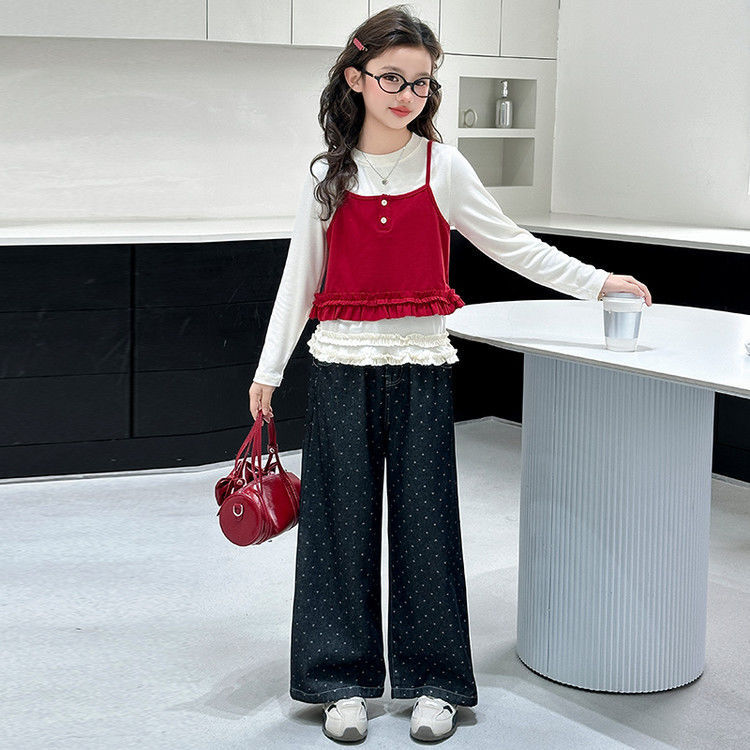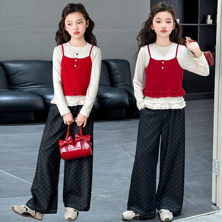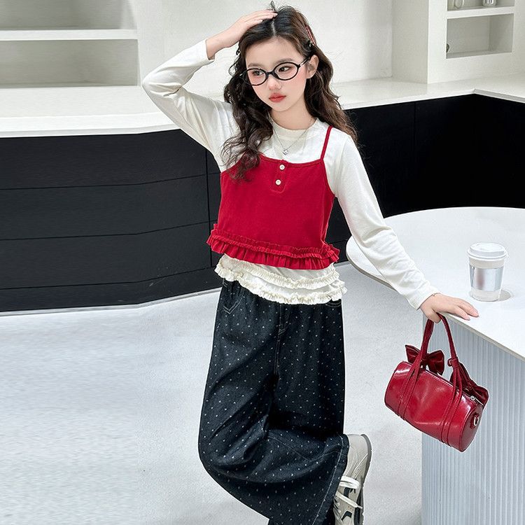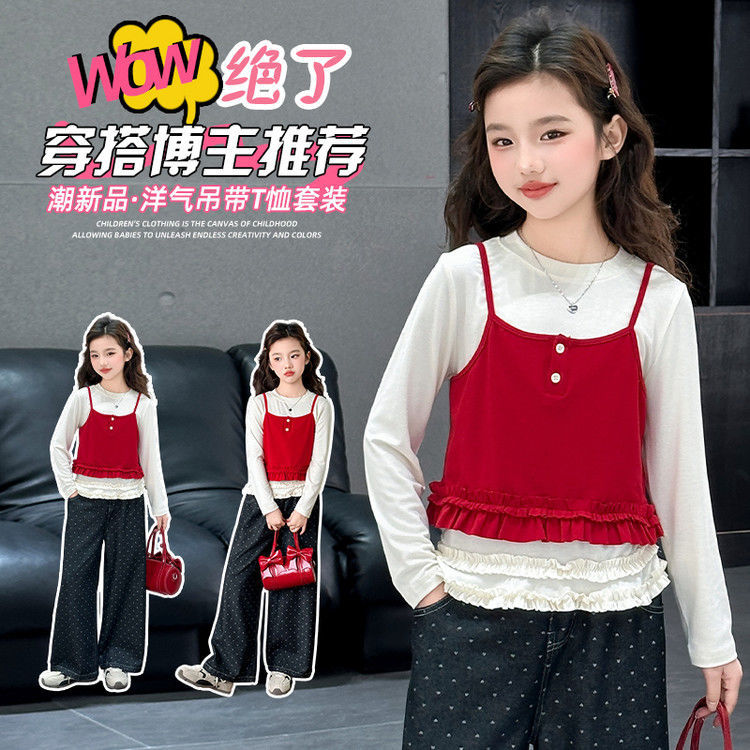 소녀의 봄 원피스 2025 새로운 스타일 유행 세트 큰 소년 소녀의 봄과 가을 슈퍼 잘 생긴 아이들의 세련된 쿨웨어스토어 가기