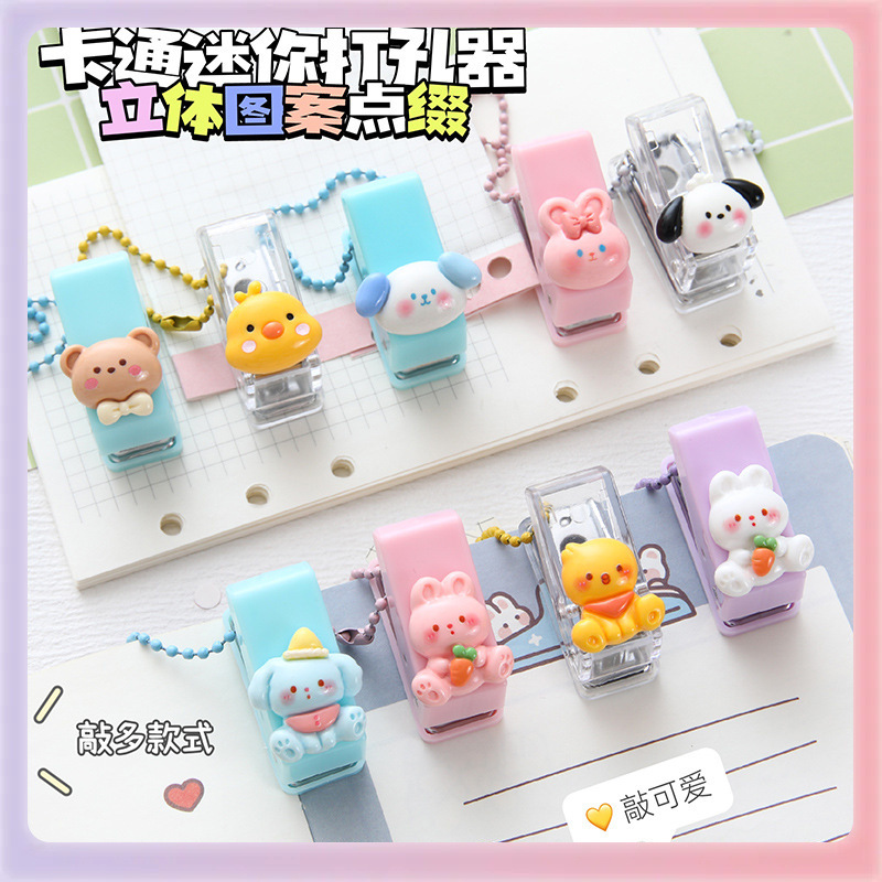 ✅만화 미니 휴대용 단일 구멍 펀처 학생 핸드북 느슨한 잎 바인딩 기계 작은 반지 구멍 펀칭스토어 가기