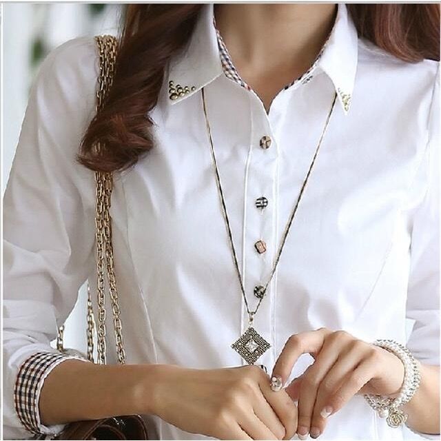 봄과 가을 새로운 여성 원피스 기지 셔츠 화이트 OL 전문 셔츠 여성 긴 소매 플러스 사이즈 바지 한국 스타일 학생스토어 가기