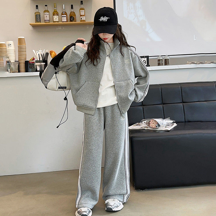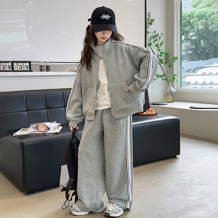 소녀의 봄 2025 새로운 서양식 어린이 봄과 가을 한국 스타일 유행 캐주얼 재킷 운동복 스포츠 세트
