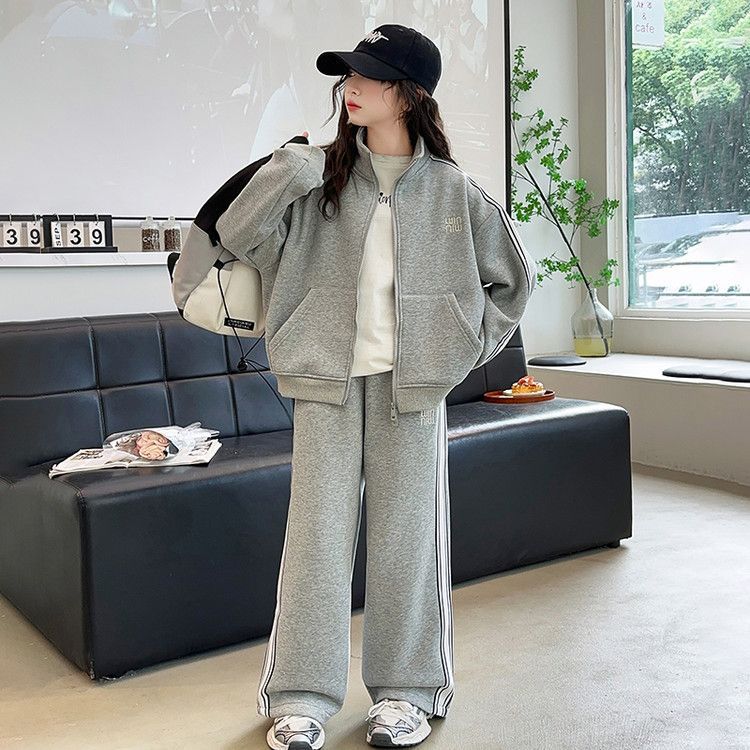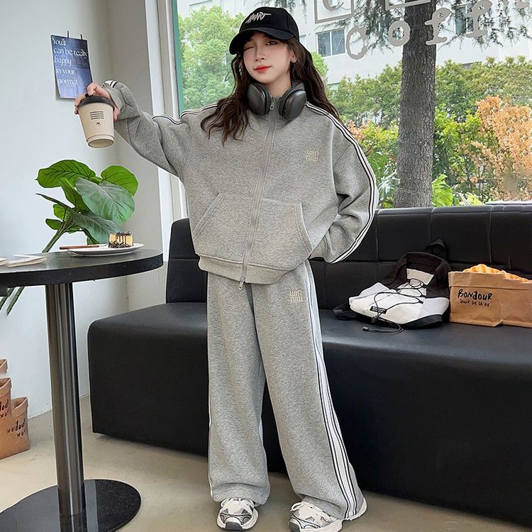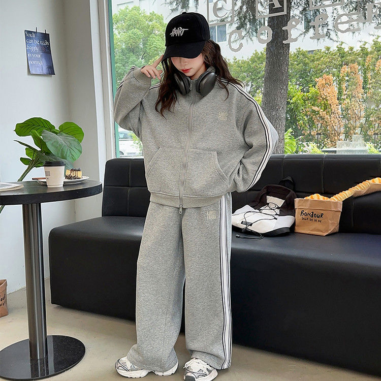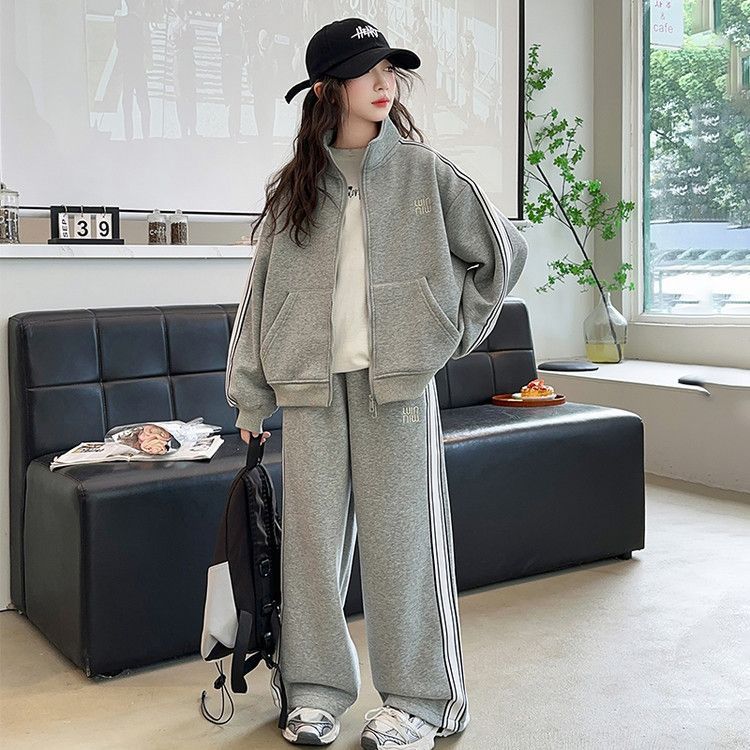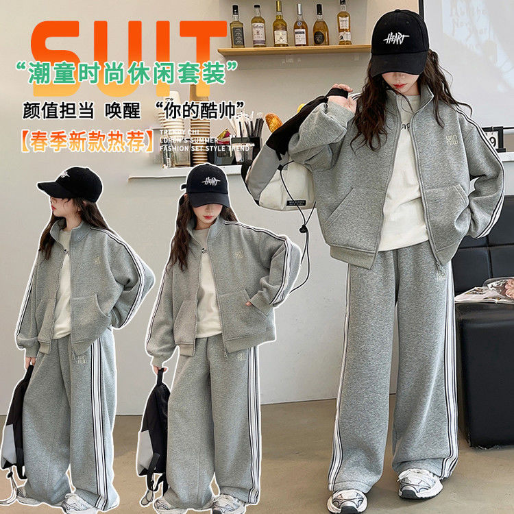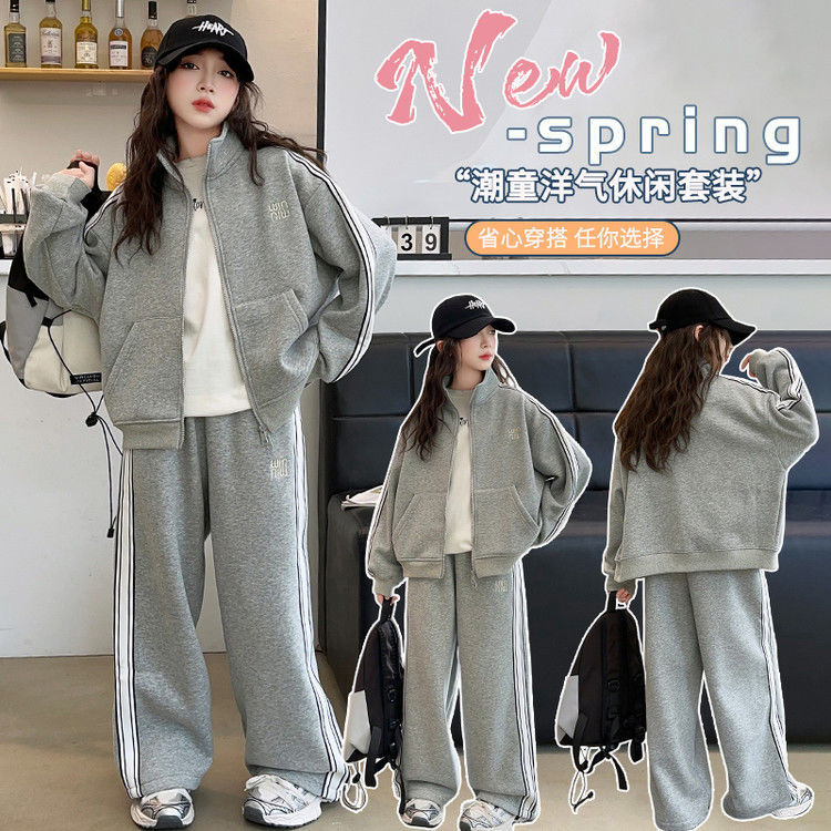 소녀의 봄 2025 새로운 서양식 어린이 봄과 가을 한국 스타일 유행 캐주얼 재킷 운동복 스포츠 세트스토어 가기