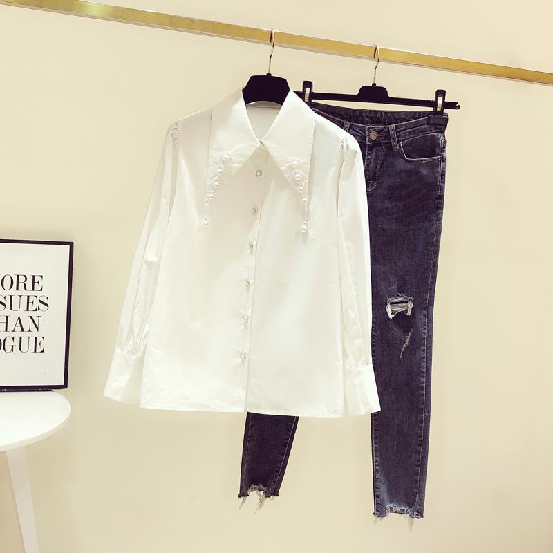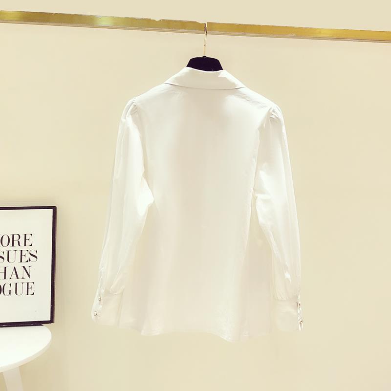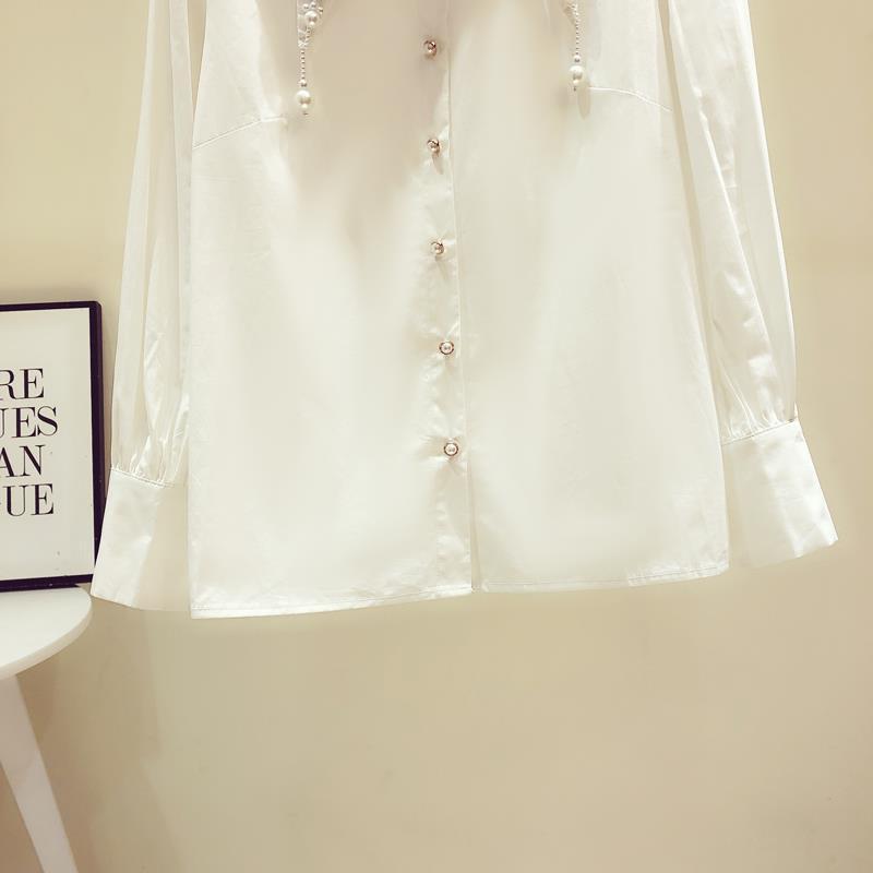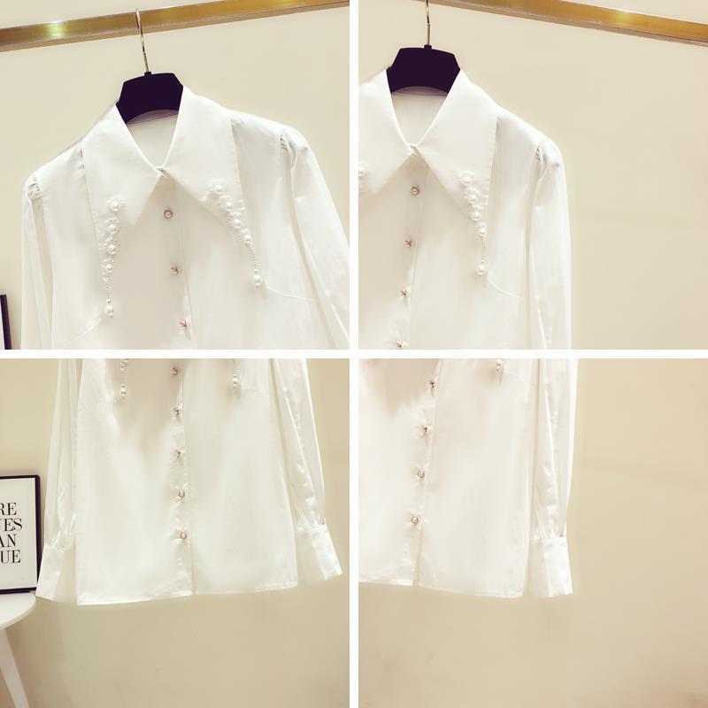 디자인 구슬 흰색 셔츠 여성의 이른 봄 새로운 프랑스 스타일 우아한 진주 포인트 칼라 긴 소매 셔츠 탑스토어 가기