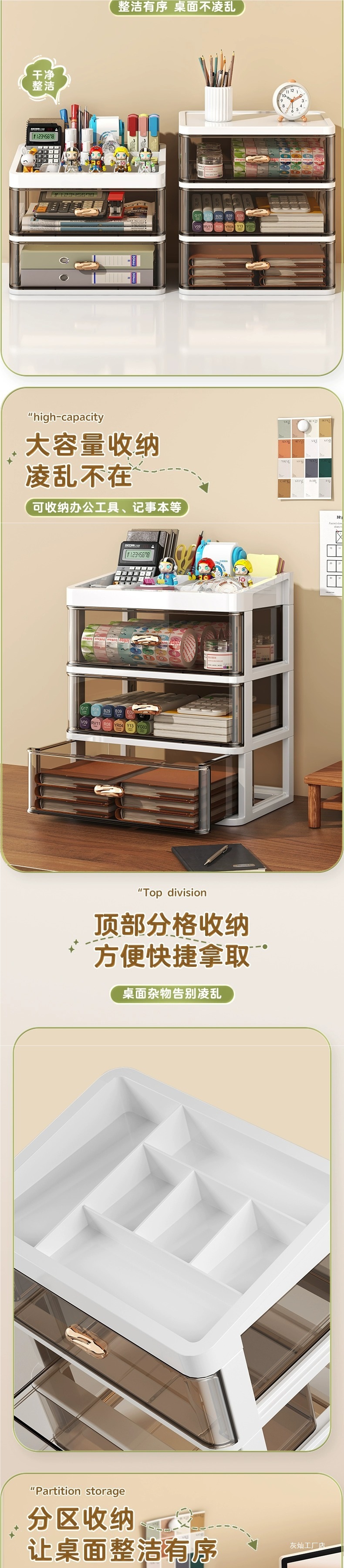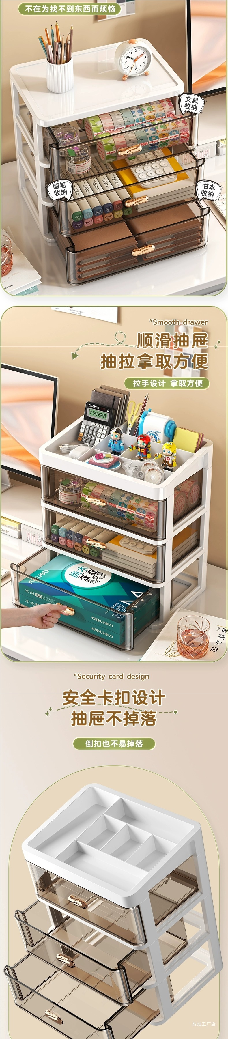 서랍 형 데스크탑 스토리지 박스 오피스 데스크 다층 잡화 스토리지 랙 문구 보관 상자 투명 마감 캐비닛스토어 가기
