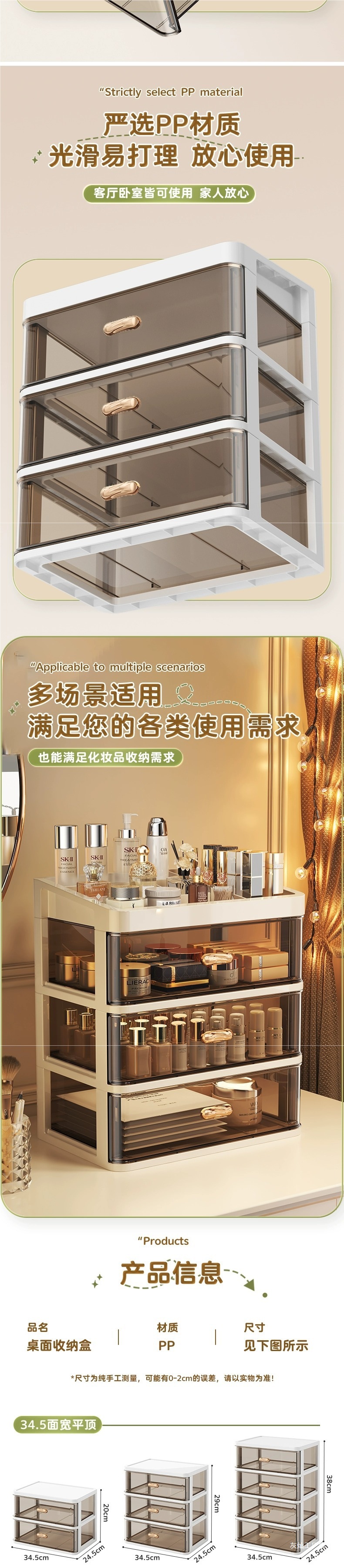 서랍 형 데스크탑 스토리지 박스 오피스 데스크 다층 잡화 스토리지 랙 문구 보관 상자 투명 마감 캐비닛