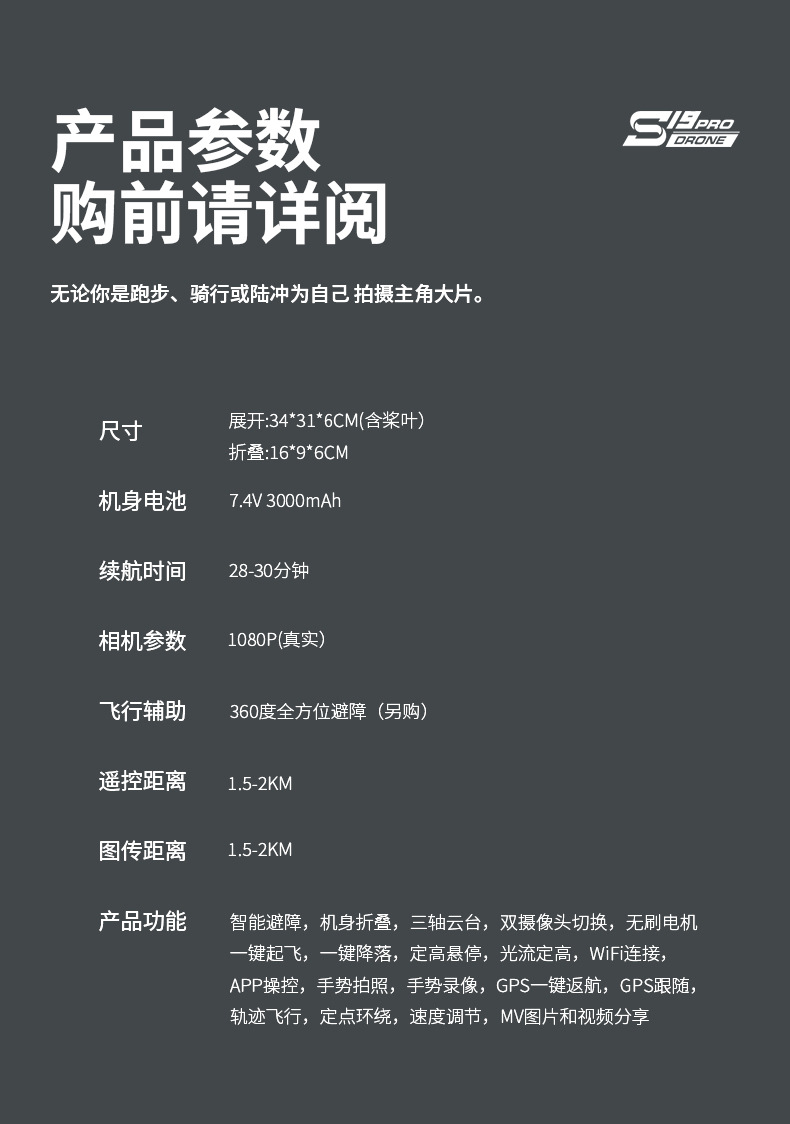 • S19-[HD 픽셀 1080P + 3축 짐벌 + GPS 복귀] 장애물 회피 버전